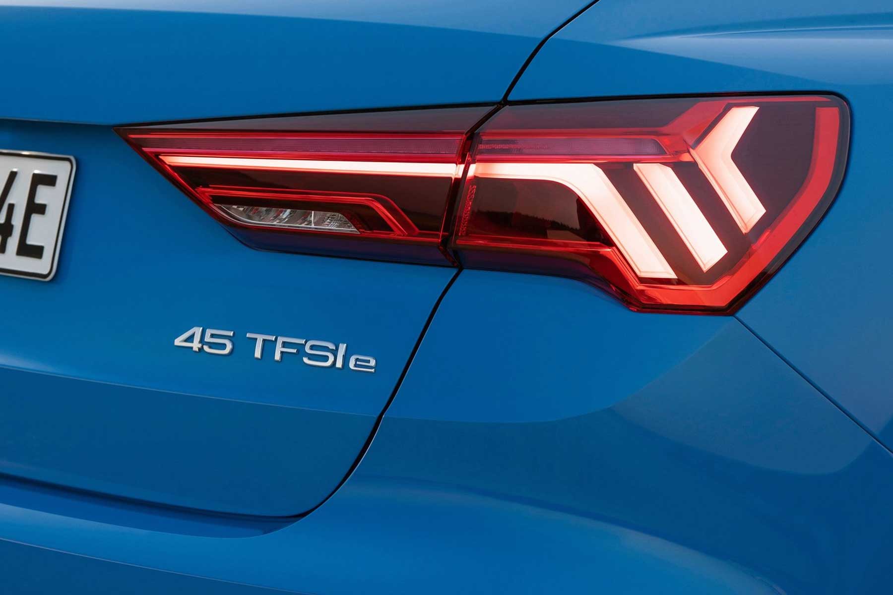 Pogonski sklop koji se krije iza oznake 45 TFSI e već je dobro poznat iz modela Volkswagena, Škode, Seata, pa čak i Cupre. Sastoji se od 1,4 TFSI turbobenzinca od 150 KS i 250 Nm i elektromotora od 110 KS. Ukupna snaga sustava je 245 KS. Q3 i Q3 Sportback s takvim pogonom od 0 do 100 km/h ubrzavaju za 7,3 sekunde i postižu najvišu brzinu od 210 km/h. Oba automobila mogu prevaliti oko 50 kilometara samo na struju, koristeći bateriju od 13 kWh. Baterija je smještena u prtljažniku i smanjuje njegov obujam sa 530 na 380 litara. Na wallboxu od 3,6 kW baterija se može napuniti za tri sata i 45 minuta.
