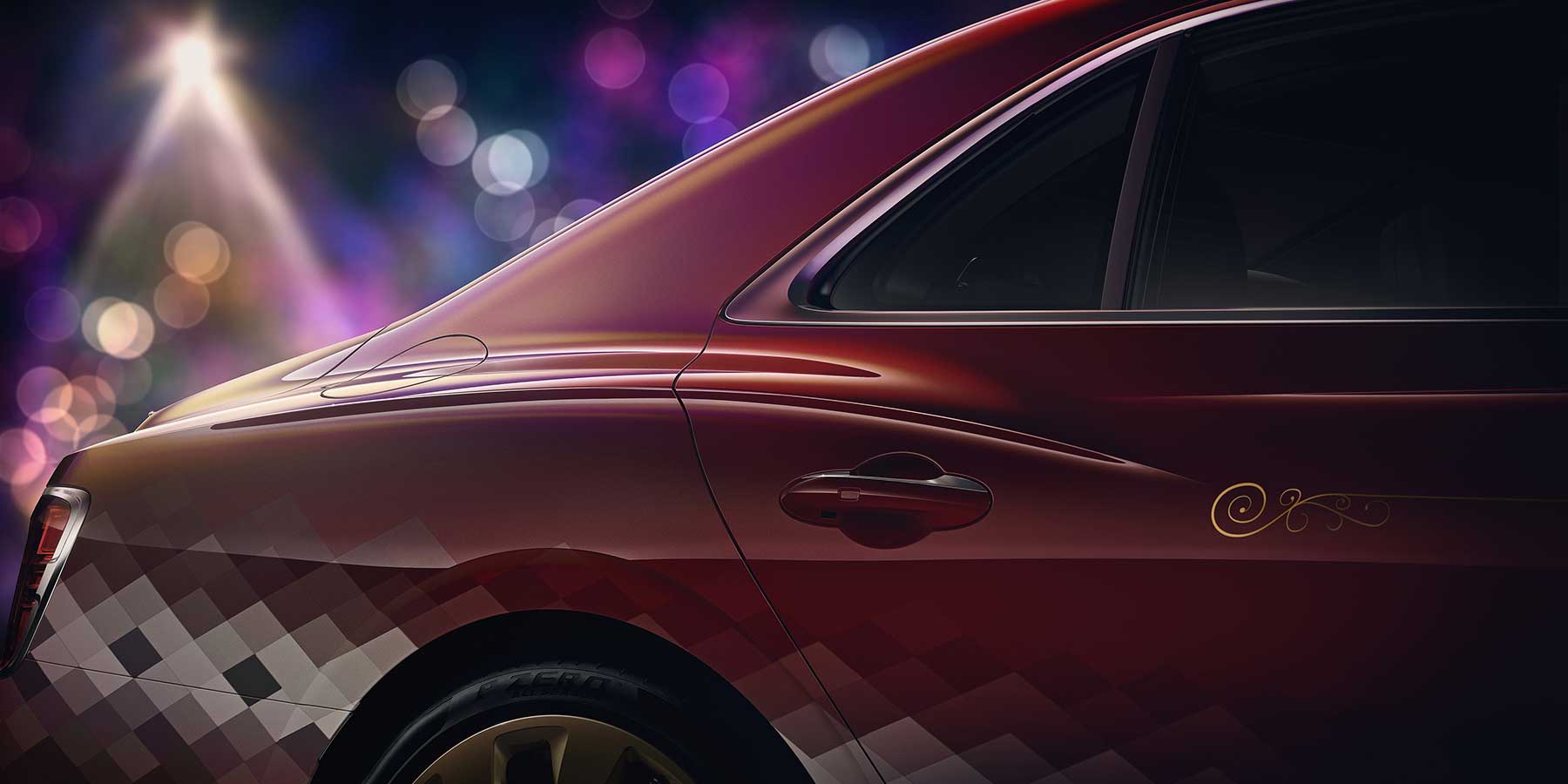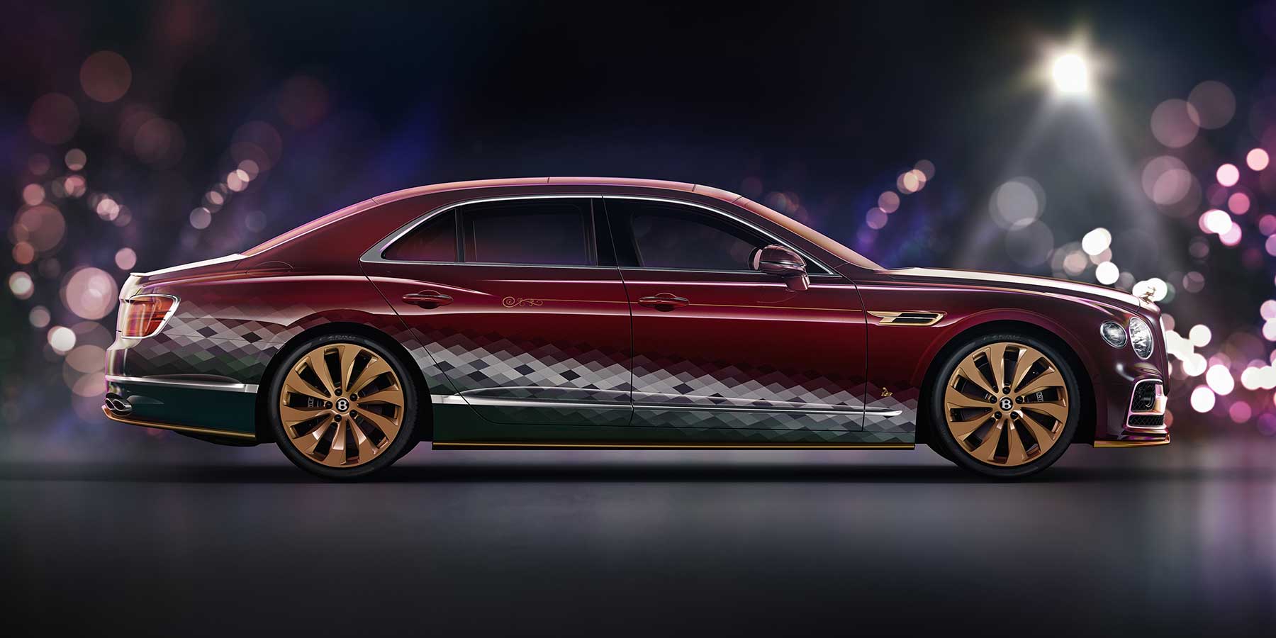 Karoserija božićnog Bentleya obojena je u posebnu tamnocrvenu boju Cricket Bauble koja se zasniva na sličnoj boji koju Bentley zove Cricket Ball. Za upadljiv nastup tu su trake s uzorkom na bokovima i veliki 22-colni zlatni naplaci. Ako malo pažljivije pogledate vidjet ćete zlatnu figuricu soba na nosu i zlatnu traku po sredini poklopca motora. Oznake V8 zamijenjene su logotipima Reindeer Eight.