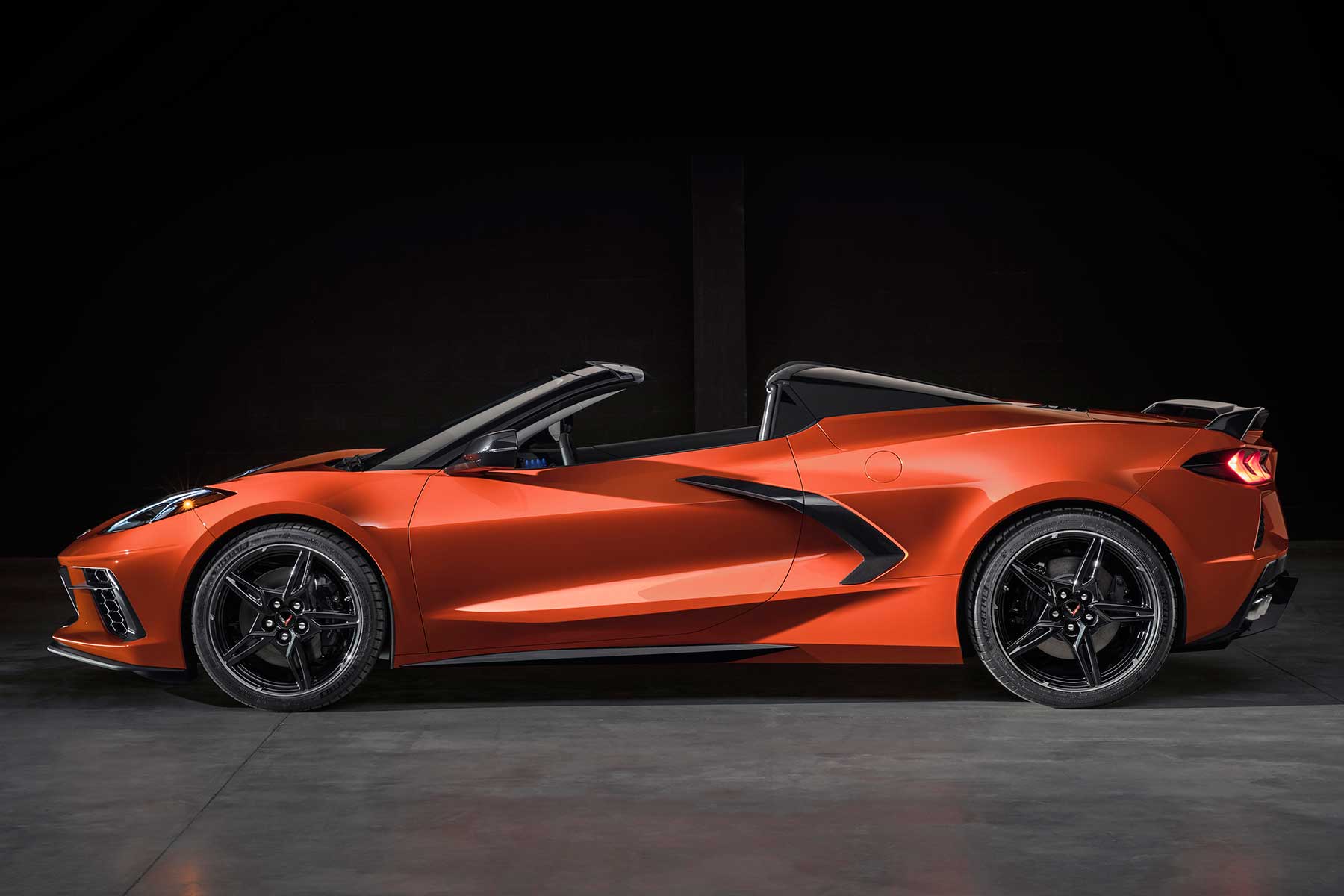Kod posljednje smjene generacija Corvette je u potpunosti promijenila koncepciju, njezin V8 motor iz nosa se preselio iza sjedala. Zanimljiva činjenica: nova je Corvette u osnovi razvijana kao kabriolet i to je razlog iz kojeg “obična” verzija tvrdi krov koji se može ručno skinuti. Kabriolet, s druge strane, ima električno sklopivi krov koji pokreće šest elektromotora. Otvara se ili zatvara za 16 sekundi do brzine od 48 km/h. Stražnji dio ove verzije jasno se razlikuje od “obične” Corvette. Krov je serijski obojen u boju karoserije, a na popisu opcija je verzija obojena poput karbona.