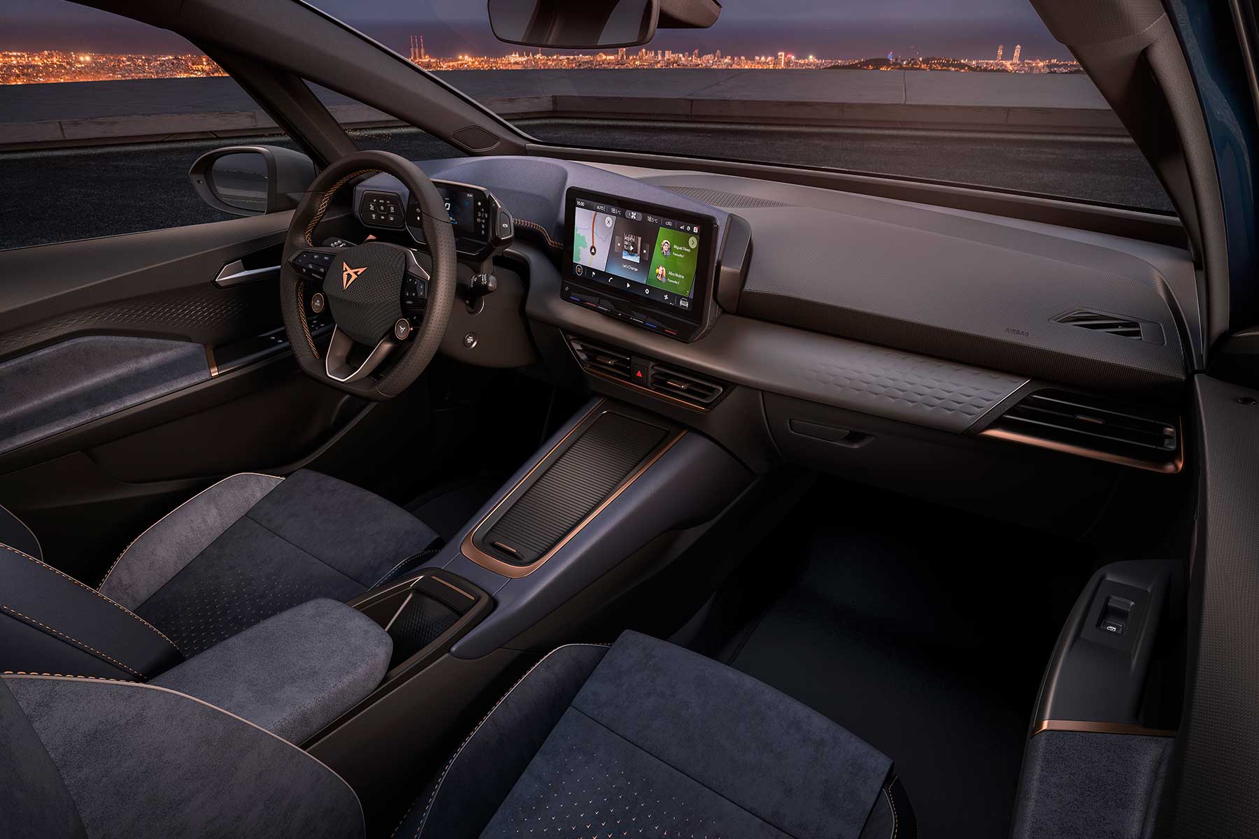 Budimo iskreni – izgled Cupre el-Born nije nikakvo iznenađenje. Kao što je Cupra Ateca jednostavno sportskija i snažnija verzija Seat Atece, tako je i Cupra el-Born sportski brat Seata el-Born. Izvana je Cuprina verzija ukrašena stvarima poput 20-colnih naplataka, proširenih pragova i većeg stražnjeg spojlera, a tu su i za Cupru tipični detalji u bakrenoj boji. Pored toga, sportski je električar bliže asfaltu.
