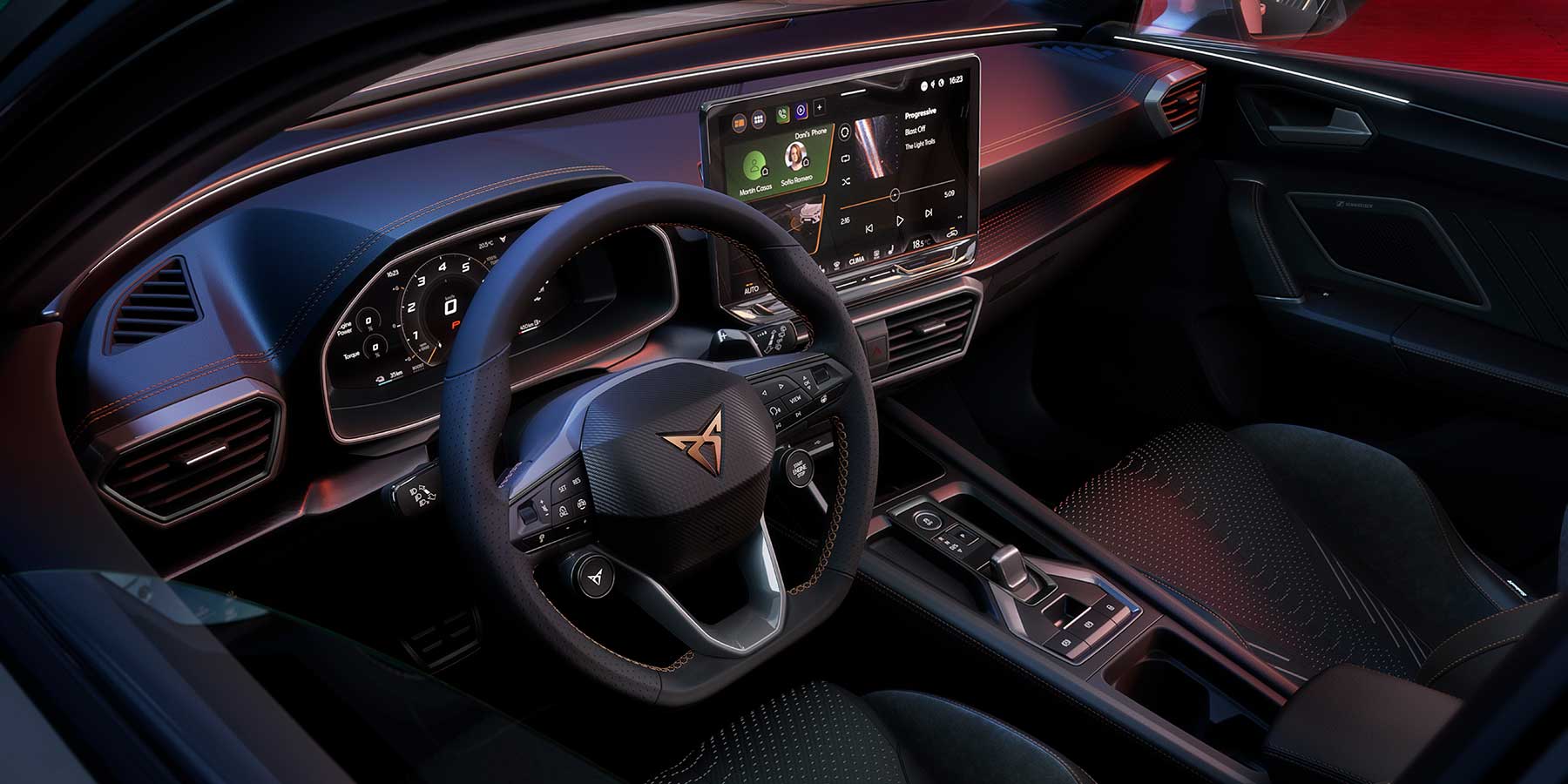 U unutrašnjosti osvježenog Leona najveća je novost dolazak novog infotainmenta. Ekran od 12,9 inča i osvijetljena klima s “klizačima” ispod, naravno, poznati su nam iz drugih modela Volkswagen Grupe, poput nedavno ažuriranog Volkswagen Golfa, s kojim Leon dijeli svoju osnovu. Cupra je također koristila nove materijale kako bi unutrašnjost bila kvalitetnija, a tu je i zvučni sustav Sennheiser s 12 zvučnika.
