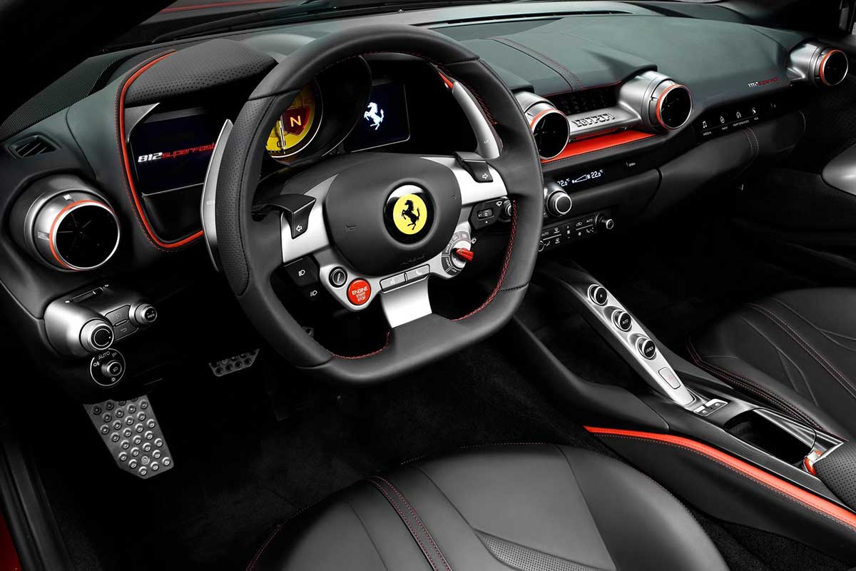 Osnova za Ferrari 812 Superfast bila je F12 Berlinetta, ali svi su ključni elementi izmijenjeni. Uz motor i podvozje, nova je i unutrašnjost koja ima stilizirane elemente koji žele stvoriti dojam lebdenja, a posebna je pažnja posvećena udobnosti u vožnji.
