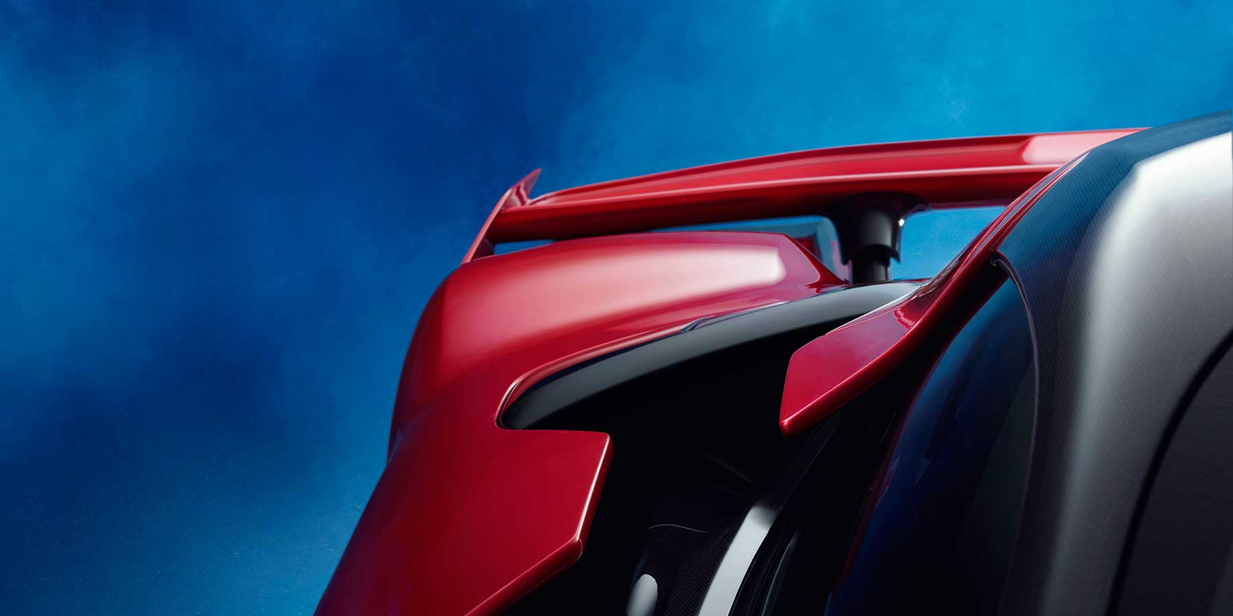 Aerodinamičke performanse potpomognute su ‘s-duct’ tunelom u stilu Le Mansa u nosu, dok poluležeći vozački položaj s nogama gore u kabini omogućuje aeroformiranje ‘kobilice’ u stilu Formule 1 ispod poda. Iako je riječ o cestovnom automobilu, F80 koristi aero ‘flicks’ i barge-boardove izravno inspirirane iskustvom Le Mansa i Formule 1, dok su straga motor i mjenjač blago nagnuti kako bi stražnjem difuzoru dali više prostora za rad. Sam difuzor dugačak je punih 1800 mm, potencijalno najveći ikada ugrađen u cestovni automobil. Stražnje krilo je potpuno aktivno i automatski se podiže pod kutom od 11 stupnjeva pri kočenju, radi bolje stabilnosti, ili se spušta do gotovo ravnog položaja za način rada s malim otporom i velikom brzinom.
