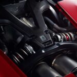 Također, ovjes stalno upravlja udaljenosti od tla, maksimizirajući mehaničko prianjanje guma pri nižim brzinama, ali spuštajući karoseriju prema dolje za ozbiljne aero performanse pri višim brzinama. Ferrari se pohvalio s 1000 kilograma potisne sile pri brzini od 250 km/h.
