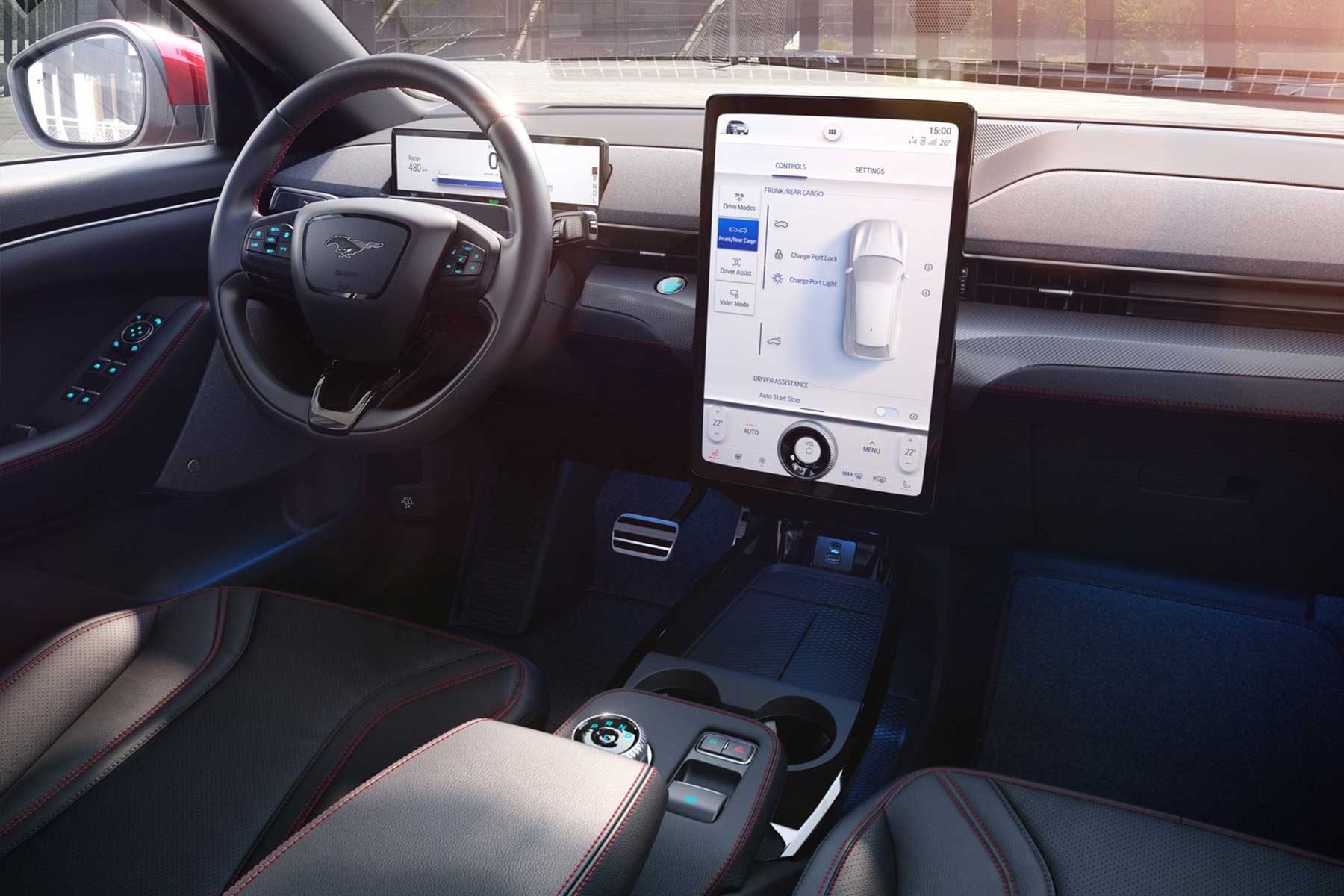 Unutrašnjost također ima detalje koji podsjećaju na original. Iza volana nalazi se mali ekran s instrumentima, dok u sredini dominira ogromni 15,5-inčni ekran. Ford se ozbiljno potrudio oko povezivosti, a sustav je sposoban i učiti, pa rako prepoznaje navike i želje različitih vozača i prilagođava im raspored na ekranu. Za klasično upravljanje funkcijama zadužen je okretni prekidač ispod ekrana.