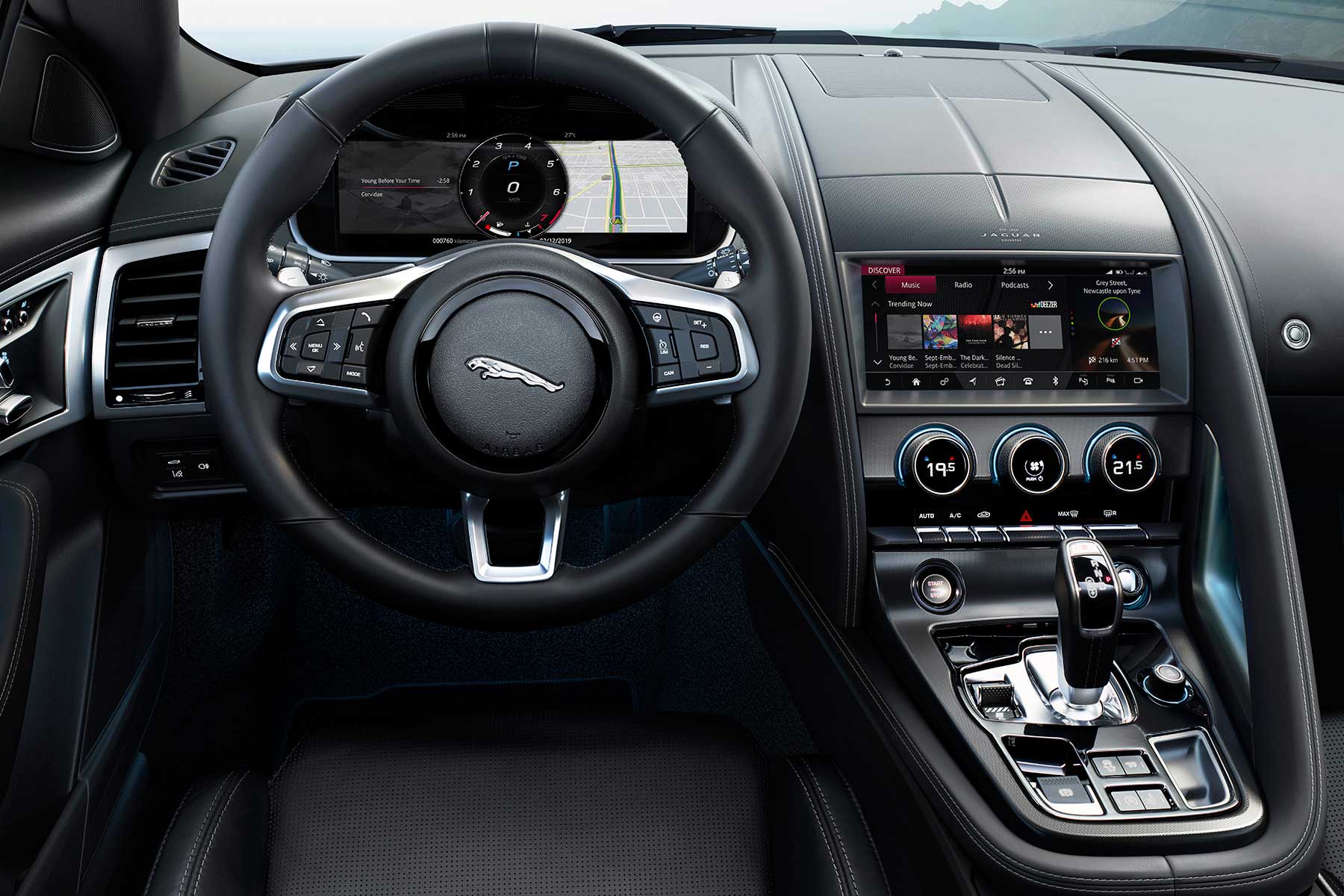 Ozbiljnije znači da je sprijeda F-Type potpuno izmijenjen. Najveća su promjena tanka horizontalna svjetla koja su sada i LED s matričnom tehnologijom, a opremljena su i dinamičkim pokazivačima smjera. Novi su i poklopac motora i maska. Iako stražnja svjetla uvelike prate izgled originalnih i ona su zapravo posve nova. Na vratima su ostale karakteristične uvučene kvake koje se elektronski podižu kada ih trebate.