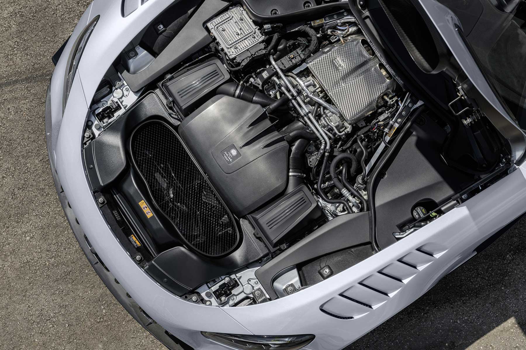 Počinje s motorom u dugom nosu GT-a Black Series. U osnovi, to je isti onaj biturbo 4,0 V8 koji pokreće brojne druge verzije ovog modela. Ono što nije isto je njegovih 730 KS i 800 Nm, značajno više od 585 KS u dosad najsnažnijem modelu AMG GT R. Tolika snaga i moment na stražnje kotače se prenose putem sedmostupanjskog automatskog mjenjača AMG Speedshift DCT 7G, naravno dorađenog da podnese toliki moment. Kako bi “iscijedili” 730 KS iz motora u AMG-u su napravili brojne modifikacije. Primjerice, ispušna je strana pomaknuta je u “vrući V” dio, između dva reda cilindara. Uz to, ugrađena su nova bregasta vratila, ispušne grane, veći intercooleri, a redoslijed paljenja razlikuje se od ostalih V8 motora. Motor je čak dobio i novu oznaku – M178LS2.