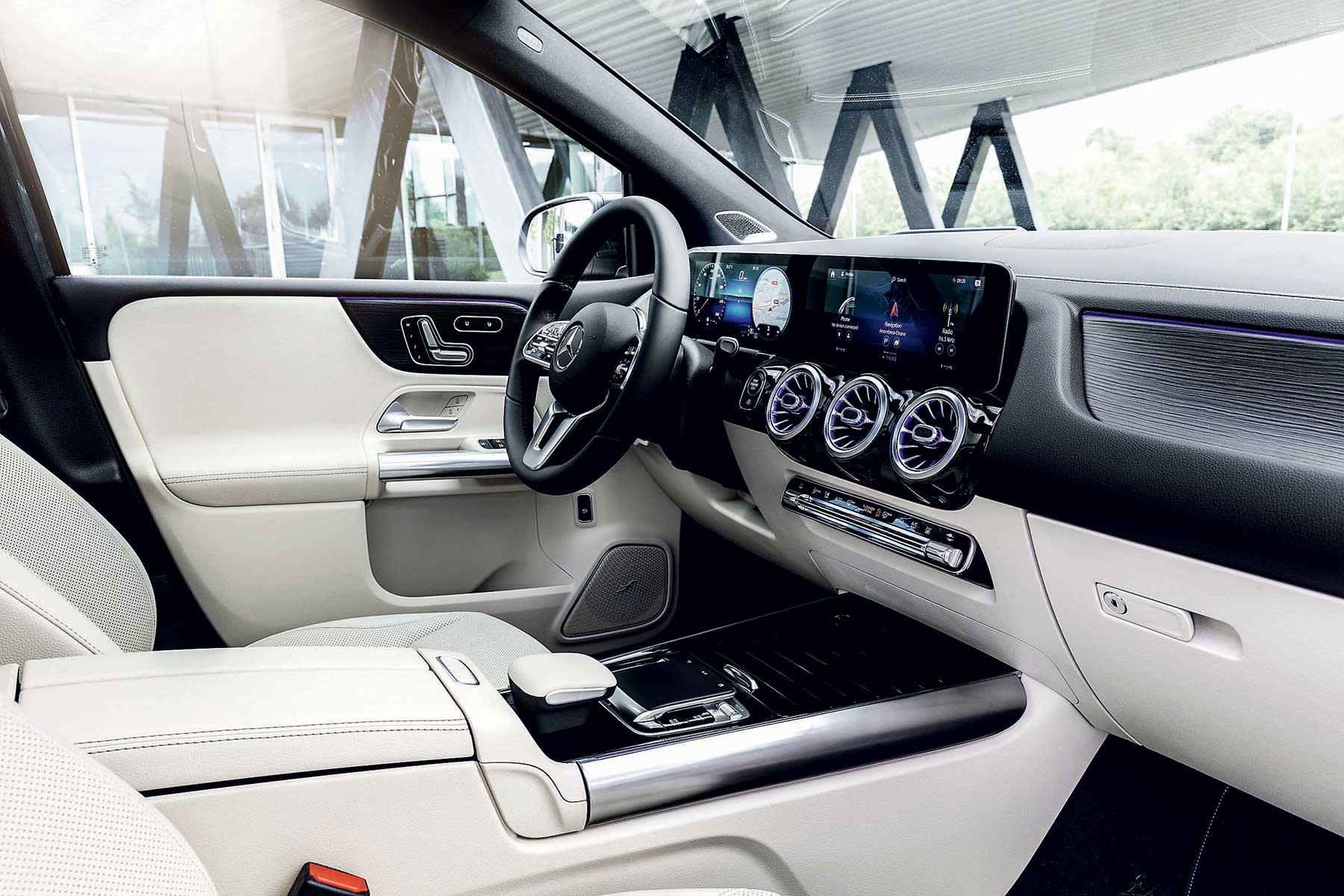 Unutrašnjost, a tu prvenstveno mislimo na armaturnu ploču, kao da je preuzeta iz drugih modela, prvenstveno A-klase. Tako dominiraju dva velika ekrana koja su zapravo spojena u jednu veliku cjelinu, a na njima se nalazi doslovno vezano sve za postavke automobila i informacije za korisnike i putnike. Treba napomenuti da veličina ekrana ovisi o opremi koju odaberete, pa tako početna kombinacija kreće sa 7-inčnim, a završava sa 10,25-inčnim ekranima.