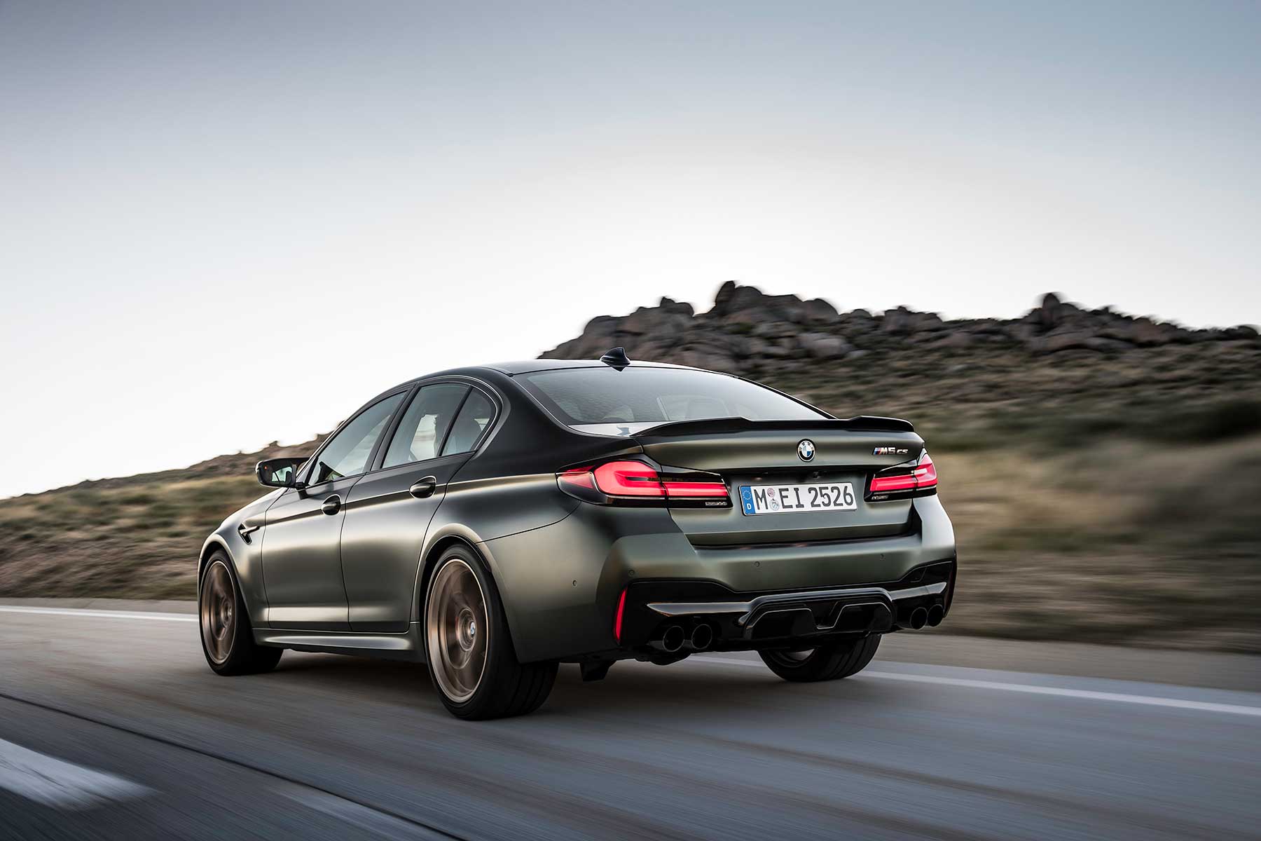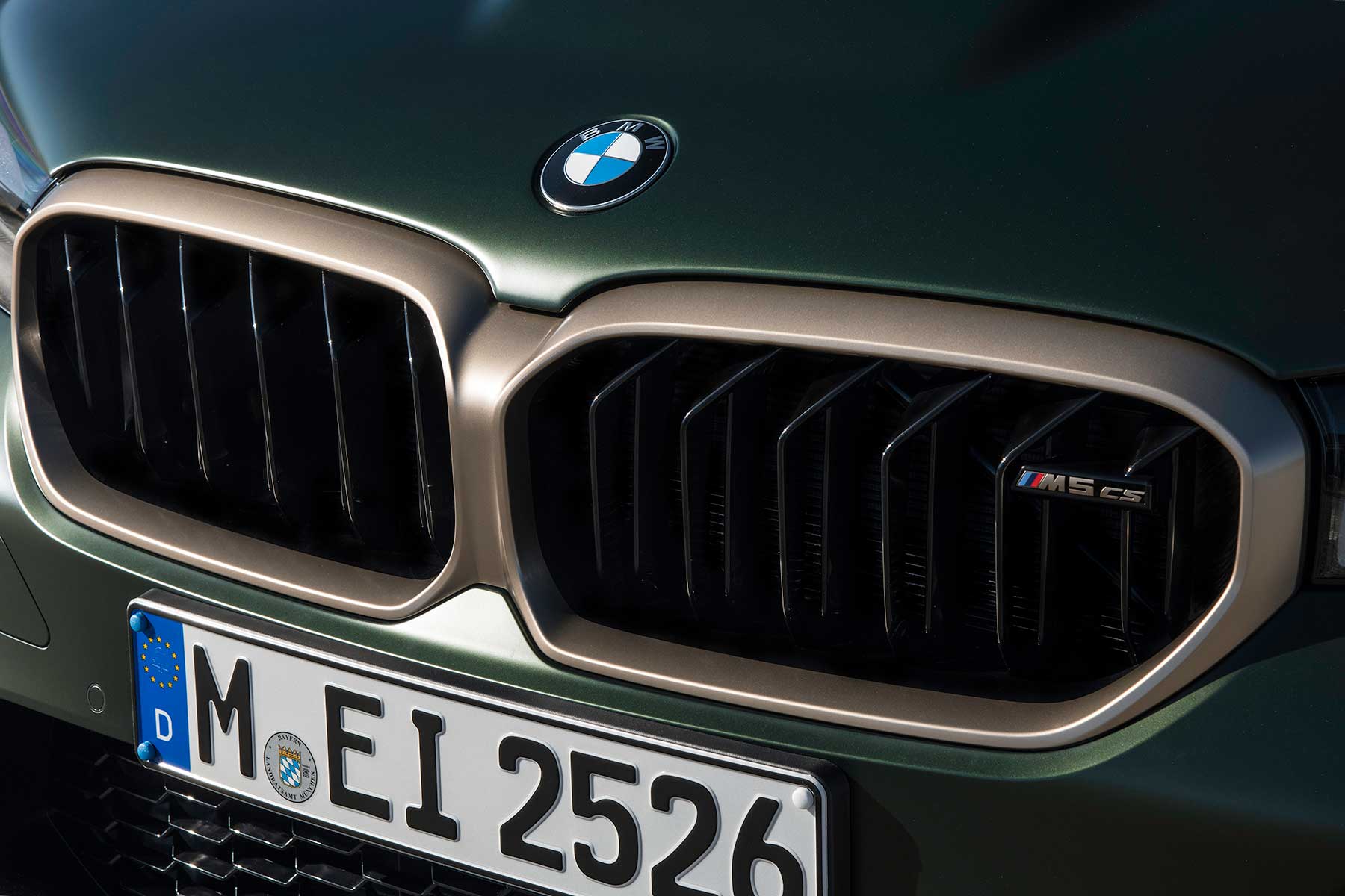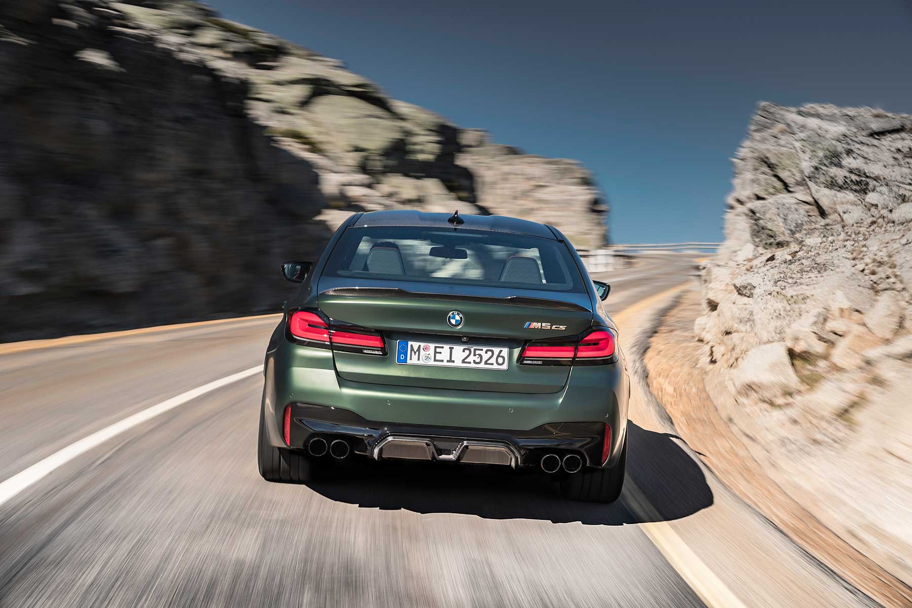 Za ubrzanje M5 CS od 0 do 100 km/h treba samo tri sekunde, što je tri desetinke brže od M5 Competitiona. Jednako impresivno je i ubrzanje do 200 km/h koje traje samo 10,4 sekunde. Najviša brzina elektronski je ograničena na 305 km/h. Izvana se M5 CS raspoznaje po detaljima brončane boje nazvane Golf Bronze. Nalaze se oko maske, na poklopcu prtljažnika, kao i na kotačima.