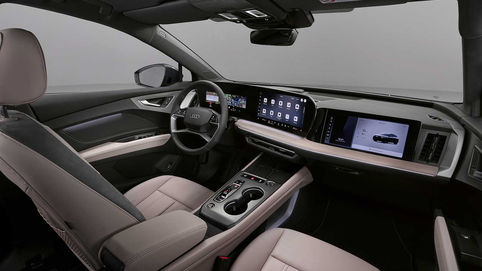 Uređenje unutrašnjosti Audi naziva “digitalnom pozornicom”. Svi modeli dobit će 11,9-inčni erkan za instrumente i 12,8-inčni ekran osjetljiv na dodir integriran iza jedne površine. 12-inčni ekran osjetljiv na dodir za suvozača je na popisu opcija, kao i head-up zaslon s proširenom stvarnošću.