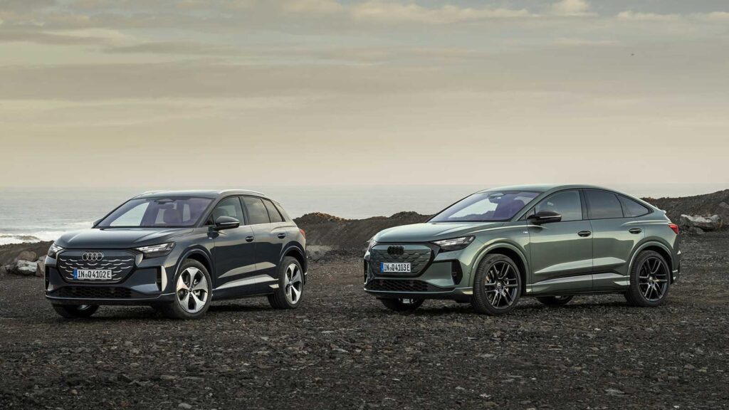 Početni model nosi jednostavnu oznaku Q4 e-tron, a kao i svi ostali, dostupanje kao klasični SUV ili kao Sportback s padajućom linijom krova. Novi elektromotor od 150 kW pokreće stražnje kotače u oba slučaja, pružajući do 204 KS i 350 Nm okretnog momenta.