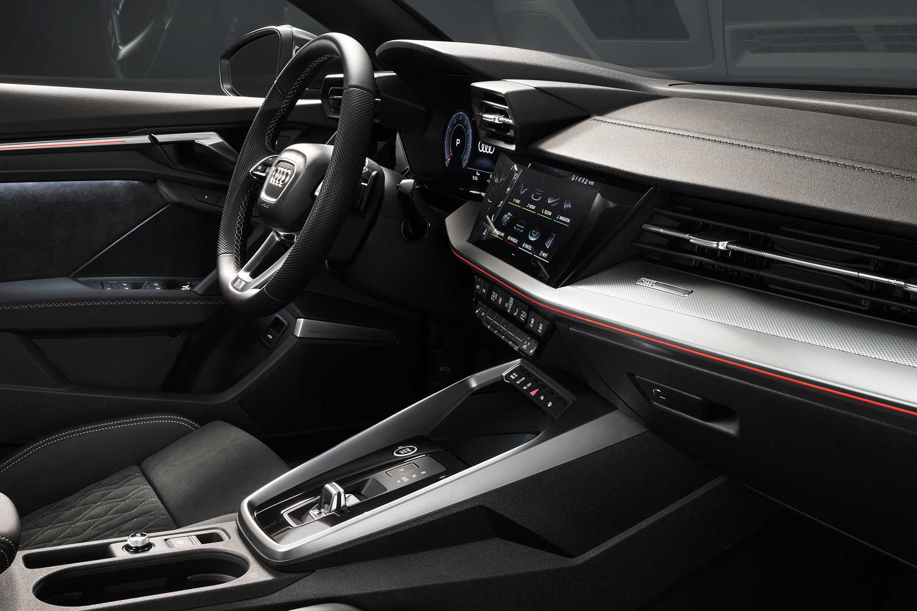 Naravno, unutrašnjost je jednaka kao i kod A3 Sportbacka što znači da s brojnim kutevima i raznim “otocima” kokpit izgleda malo natrpanije, ali i modernije. Središnji ekran sada je smješten u središnju konzolu, dijagonala mu je 10,1 inča, a iza njega se krije novi sustav MMI, pa je tako i okretni prekidač kojim se upravljalo njime ranije također uklonjen. Iza volana, koji je također nov, serijski se nalazi 10,25-inčni ekran koji prikazuje instrumente. Dodatno se mogu naručiti head-up displej i 12,3-inčni ekran.