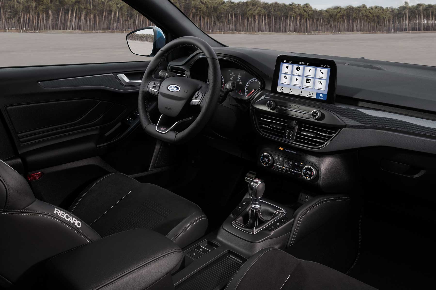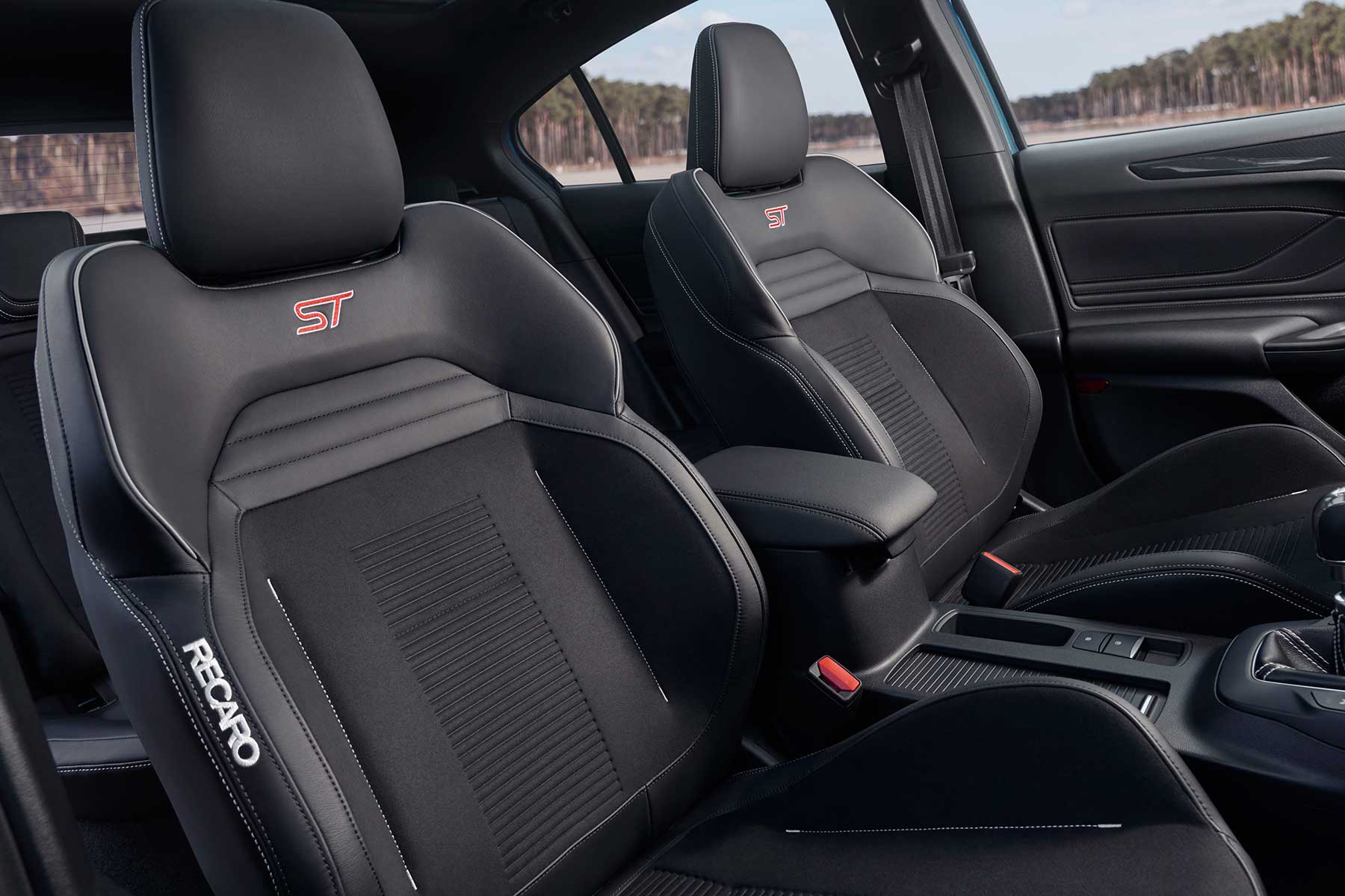 U unutrašnjosti se ističu novi instrumenti koji pokazuju tlak ulja i prednabijanja, kao i temperaturu ulja, a sve se to prikazuje na 4,2-inčnom ekranu. Tu su i Recarova sportska sjedala koja mogu biti presvučena tkaninom, kožom ili njihovom kombinacijom. Volan je s donje strane ravan, papučice su aluminijske, a tu su i logotipi ST.
