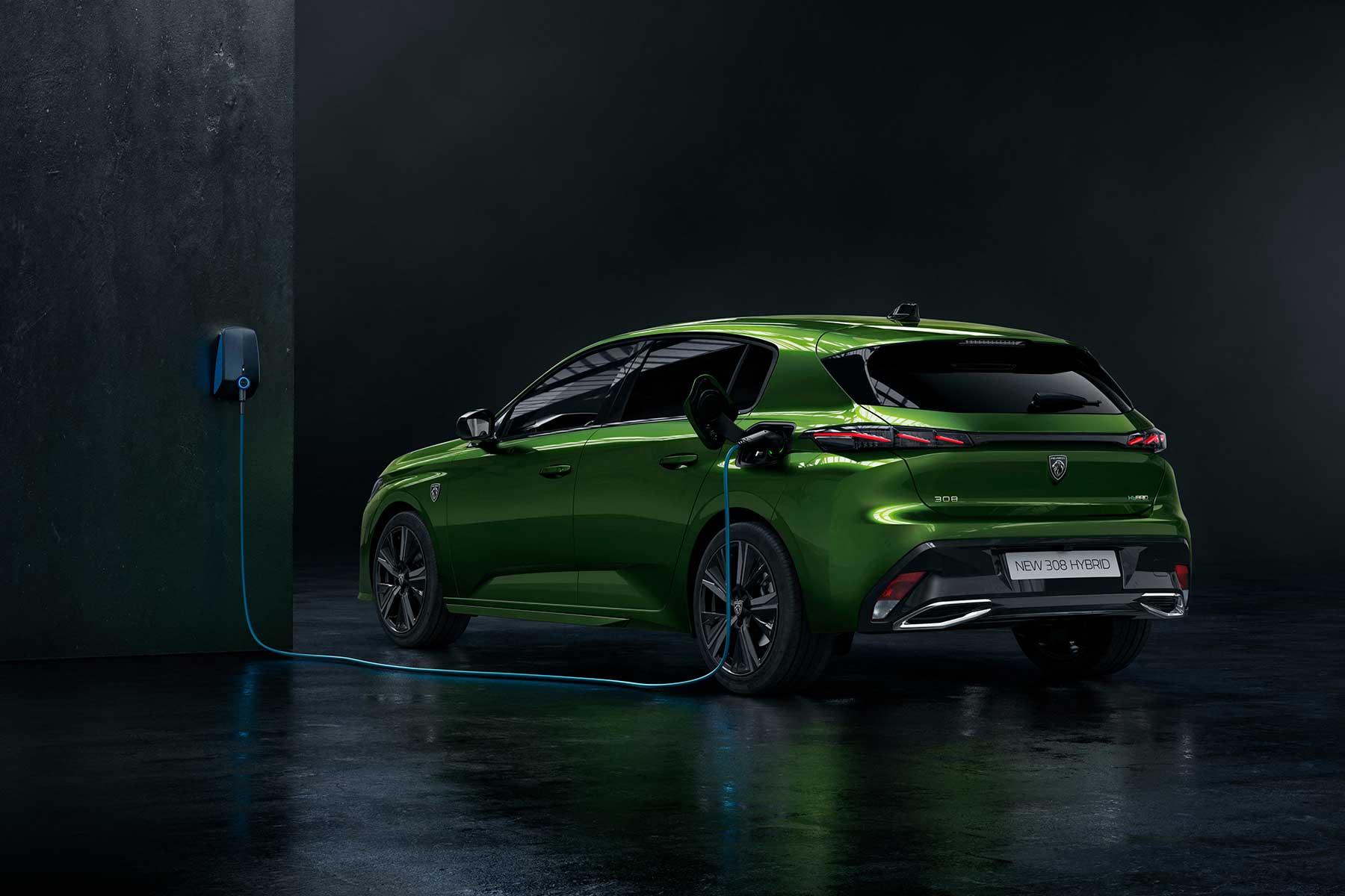U trećoj generaciji Peugeot 308 po prvi put dobiva i plug-in hibridni pogon i to u dvije verzije. Snažnija, pod oznakom Hybrid 225, sastoji se od 1,6 PureTech turbobenzinca od 180 KS i elektromotora od 110 KS. Snaga sustava je 225 KS, a na kotače se prenosi putem osmostupanjskog automatskog mjenjača. Baterija od 12,4 kWh omogućuje mu doseg od 59 kilometara samo na struju. Slabija verzija skriva se iza oznake Hybrid 180, a razlikuje se u snazi benzinskog motora koji razvija 150 KS. Baterija je jednaka, a doseg na struju tek za jedan kilometar veći. Zbog baterija je prtljažnik hibridne 308-ice smanjen na još uvijek solidnu 361 litru. Serijski dolazi sa 3,7 kW jednofaznim punjačem, dok je onaj od 7,4 kW na popisu opcija.