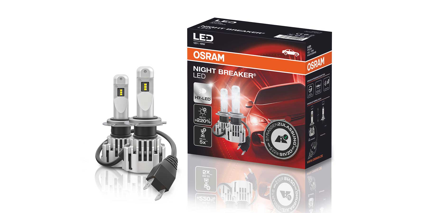 Night Breaker LED H7 iz Osrama prva je LED žarulja za nadogradnju koja je prošla opsežne ispitne postupke TÜV Süda, što je čini legalnom zamjenom za halogene žarulje H7 u testiranim modelima vozila. To potvrđuje i Centar za vozila Hrvatske (CVH) izdavanjem individualnog odobrenja za cestovnu upotrebu. Odobrenje trenutno obuhvaća kratko svjetlo koje se nalazi u mnogim uobičajenim modelima vozila registriranim u Hrvatskoj. To uključuje popularne modele kao što su: Alfa Romeo Giulietta, Audi A3, A4 i Q3, BMW serije 2 i 3, Citroen Jumper, Dacia Duster, Fiat Ducato, Ford Fiesta, Galaxy, Mondeo i S-Max, Mercedes CLA i Sprinter, Opel Astra, Peugeot 308 i Boxer, Seat Ibiza, Škoda Octavia te VW Crafter, Golf 6, Golf 7, Passat, Polo i Tiguan. Broj vozila stalno se povećava neprekidnim ispitivanjima i postupcima odobrenja. Kompletni i najnoviji popis potražite ovdje.