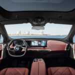 Unutrašnjost je vrlo futuristička. Iza šesterokutnog upravljača vidimo široku ploču s dva ekrana koja objedinjuje informacije i infotainment sustav. Dio zadužen za instrumente mjeri 12,3 inča, dok ekran infotainmenta mjeri 14,9 inča. Ispod njih su tanki i široki ventilacijski otvori. Središnji tunel odvojen je od ostatka armature. Opcijski će iX biti dostupan sa staklenim panoramskim krovom koji se elektrokromatski zatamnjuje. Krov se ne otvara i najveći je dosad ugrađeni stakleni krov u jedan BMW.