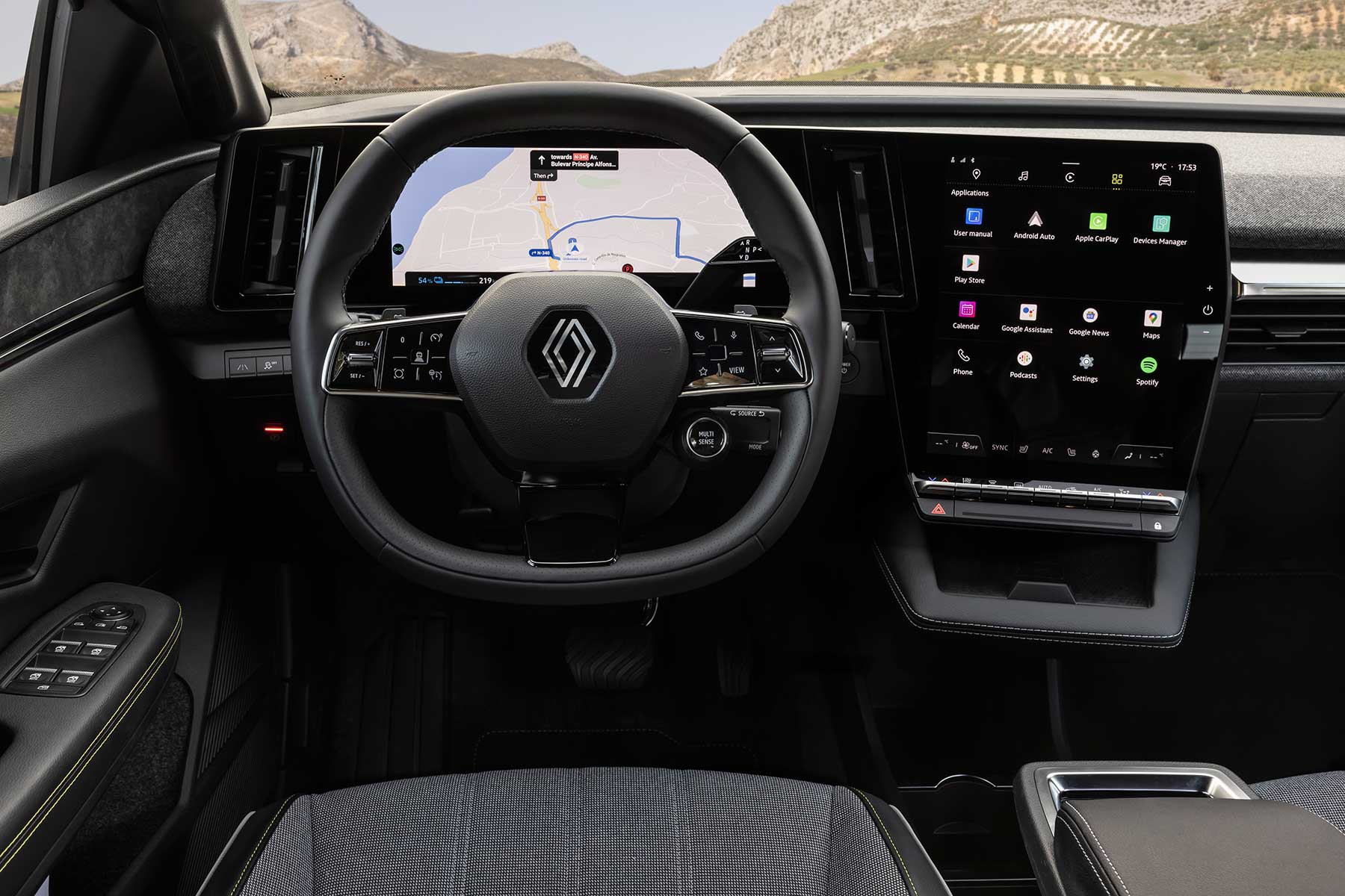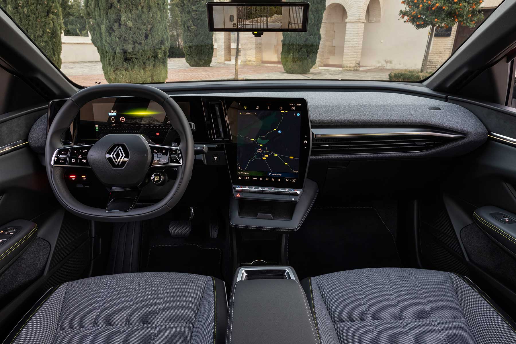 Pored praktičnog aspekta, unutrašnjost električnog Meganea je posebno upečatljiva zbog velikog digitalnog ekrana u obliku naopakog slova L, nazvanog OpenR. Riječ je zapravo o dva ekrana: horizontalni iza volana prikazuje podatke o vožnji, dok vertikalni dio u sredini armature prikazuje podatke multimedijskog sustava. OpenR Link koristi Android Automotive kao pravu ekstenziju vašeg telefona, s kojim osobne značajke mogu biti povezane s Google računom. Bez brige za korisnike iPhonea, OpenR Link kompatibilan je i s Apple CarPlayom. Po pitanju korištenja, moramo reći da je sustav dobro osmišljen, relativno ergonomski i jednostavan za shvaćanje