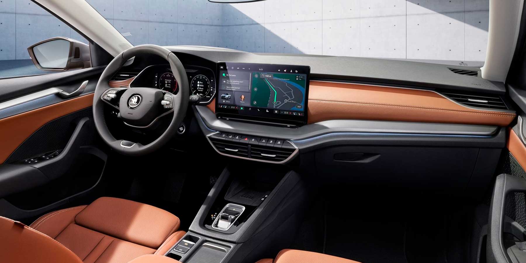 Novosti ima i u unutrašnjosti. Prvo, a možda i najvažnije, nakon Superba i Kodiaqa i Octavia je dobila novi infotainment. Osnovni ekran je 10-inčni, dok bogatije opremljeni modeli imaju 13-inčni središnji ekran. Kao i drugi modeli marki Volkswagen grupe, Octavia će imati funkcionalnosti koje će omogućiti umjetna inteligencija ChatGPT.