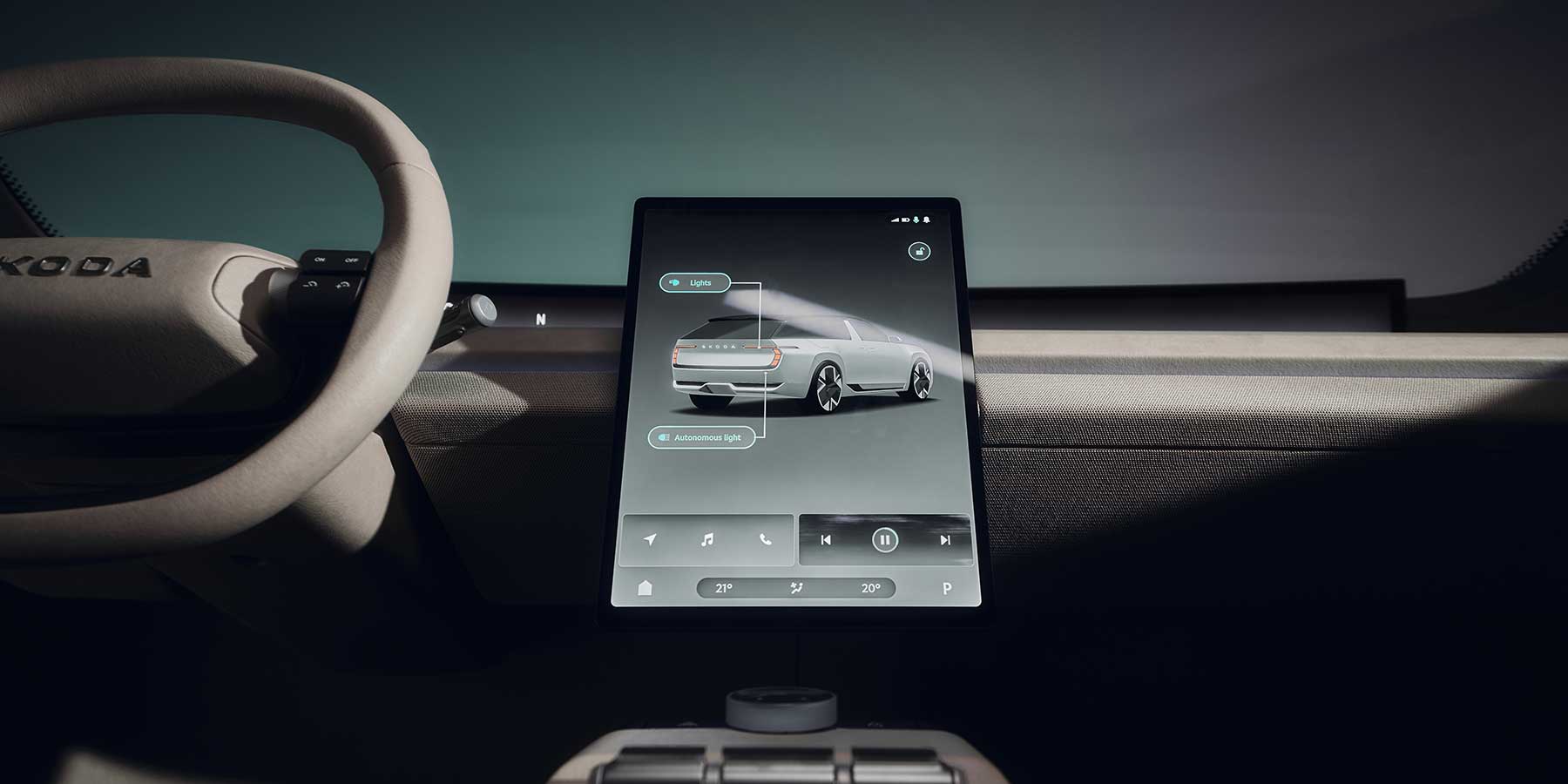 Osim ekološki prihvatljivih karakteristika unutrašnjosti, Škoda Vision O ima mnoštvo praktičnih značajki. Vrata sadrže velike pretince za odlaganje koji nadilaze uobičajene pretince na vratima, uključujući poklopac koji se otvara prema gore. Ostale nove značajke uključuju ugrađeni hladnjak, namjenski prostor za kablove za punjenje u prtljažniku i dvije bežične magnetske podloge za punjenje na središnjoj konzoli koje sprječavaju pomicanje telefona. Kako biste glazbu imali sa sobom u pokretu, tu je prijenosni Bluetooth zvučnik koji možete izvaditi iz automobila. Naravno, u vratima se još uvijek nalaze kišobrani.