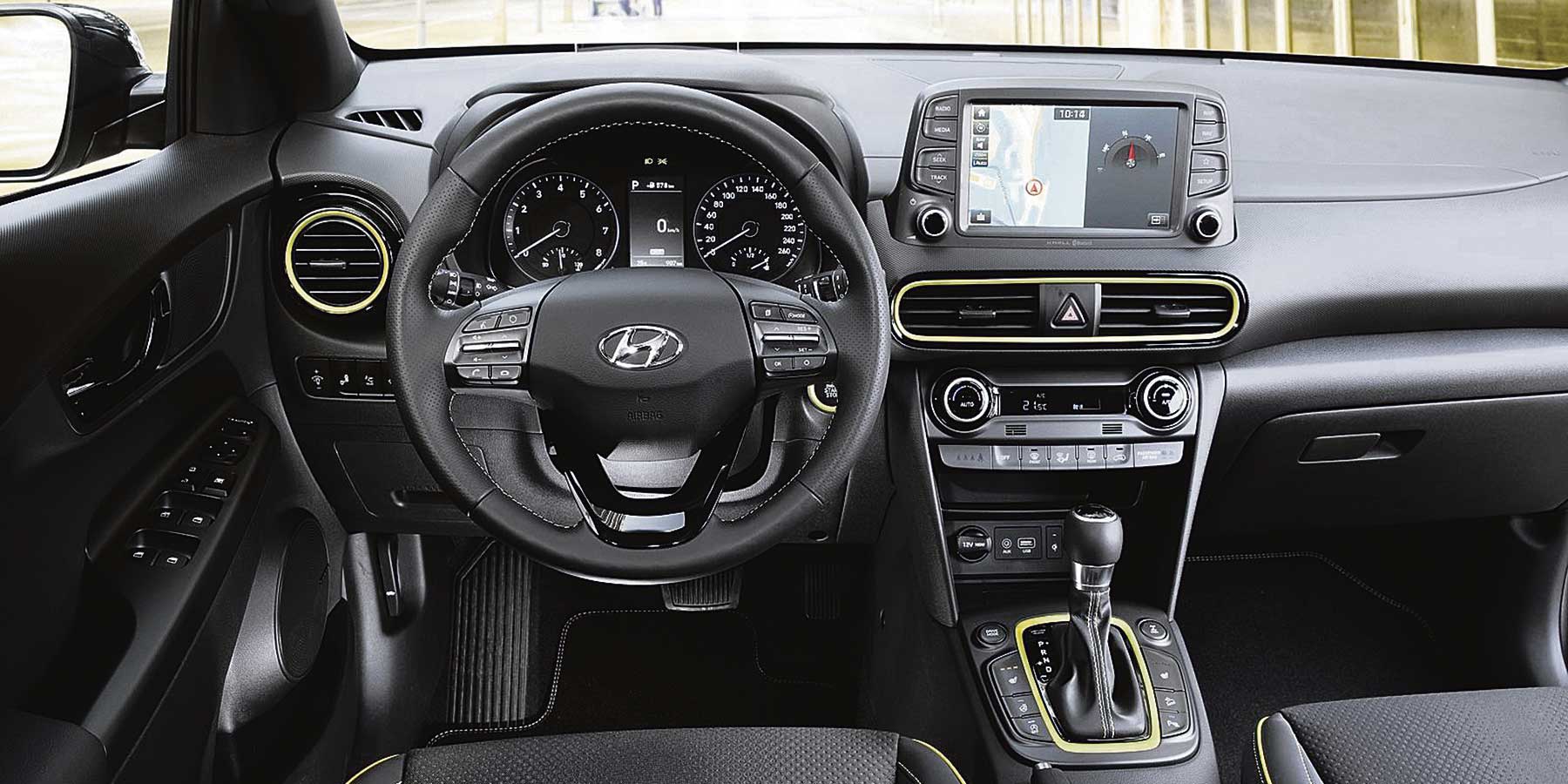 Unutrašnjost je uređena konzervativnije, ali to nipošto ne znači da je dosadna. Ukupan dojam koji ostavlja kabina Kone je moderan, a naravno, središnje mjesto zauzima ekran osjetljiv na dodir preko kojeg se upravlja infotainmentom i većinom funkcija automobila.