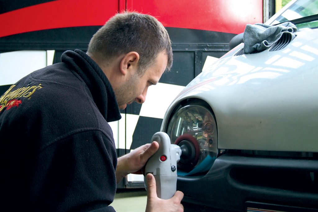 Poliranje se najbolje obavlja strojno s ekscentričnom brusilicom na koju se stavljaju različite gradacije polirajućih spužvi, uz dodatak polirne paste. Oni vještiji posao mogu napraviti sami. Polirati možete i ručno sa finim brusnim papirom na vodu i dodatnim završnim poliranjem pastom i spužvicom. Svjetla nije potrebno skidati niti rastavljati.