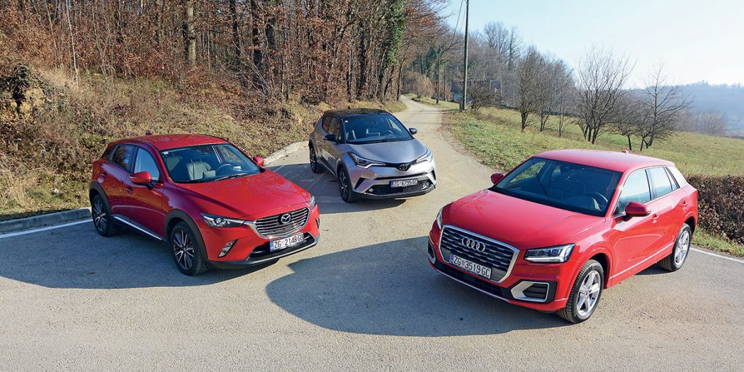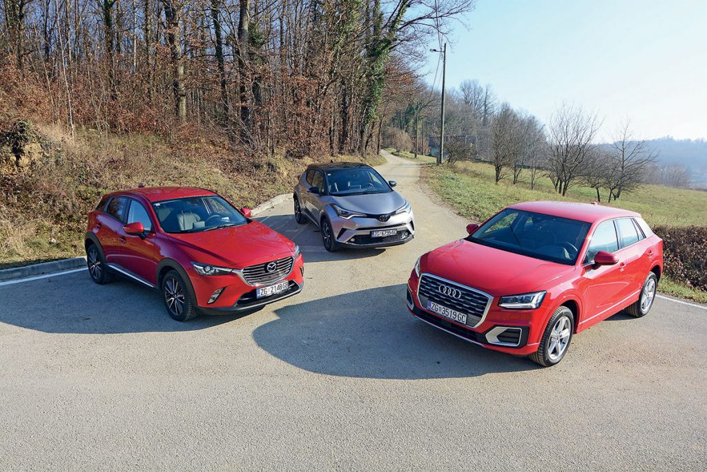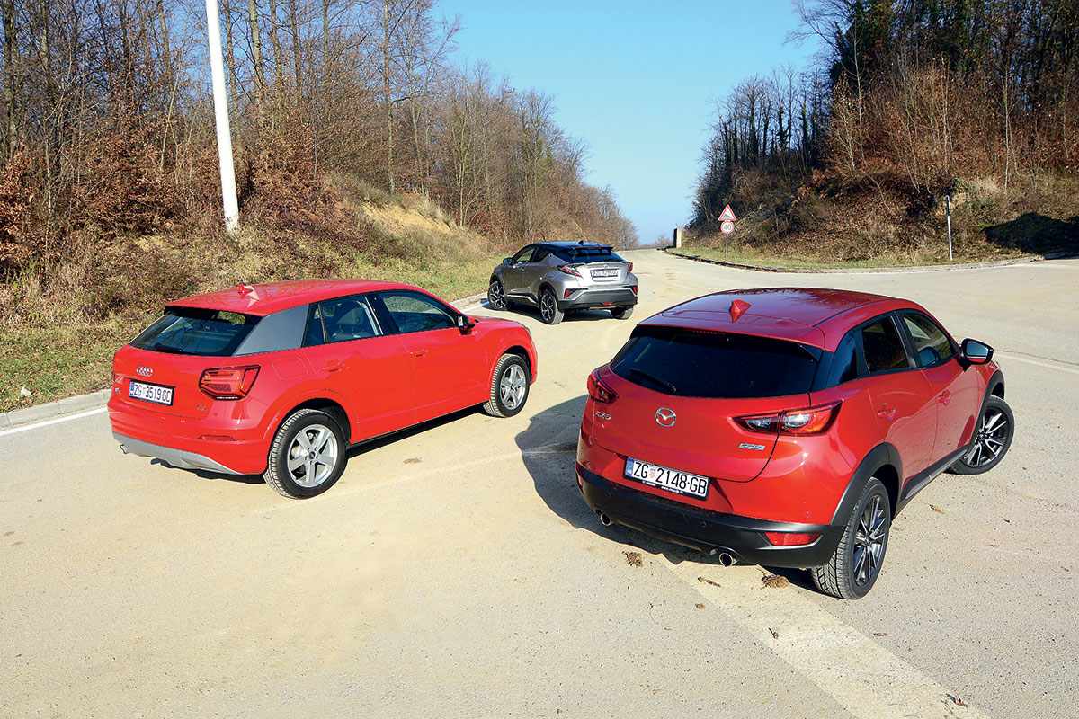 U klasi malenih SUV-a i crossovera ponuda nije mala, ali upravo naša tri kandidata za usporedbu žele na neki način biti posebni. Audi je premium, a slično želi biti i Mazda. Oba donose brojne elemente iz skupljih i većih automobila u svoju klasu, dok se Toyota želi nametnuti drukčijim izgledom i, očekivano, hibridnim pogonom.
