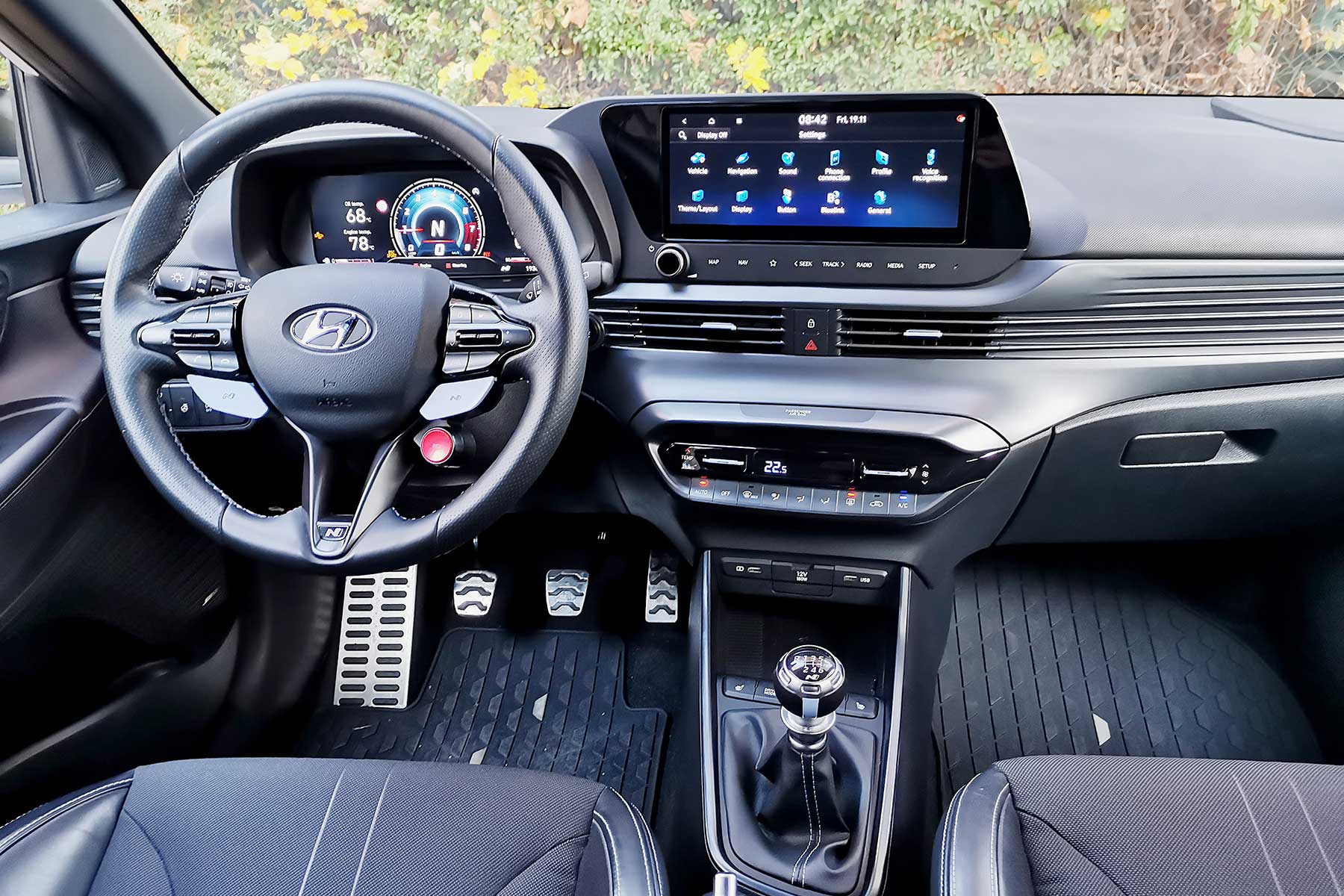 Ekran infotainmenta je dovoljno jednostavan za upotrebu, a ima i poseban N dio. On pokazuje osnovne informacije poput G-sila, ubrzanja i postotaka, ali vam isto tako omogućuje podešavanje za ispuh, volan i rad motora. Srećom, možete napraviti vlastite postavke i spremiti ih. Instrumenti su također digitalni koji omogućuju odabir raznih prikaza i podataka koji se prikazuju. Ako ste pomislili kako je sve u unutrašnjosti na ekranima osjetljivima na dodir, srećom ste se prevarili. Klima-uređaj ima klasične tipke, a i glasnoća audio-sustava podešava se dobrim starim okretnim potenciometrom. Za one koji nisu za volanom, putnici imaju dovoljno prostora, više sprijeda, nešto manje straga, dok je prtljažnik pristojnog obujma od 352 litre. Ako imate potrebe prevesti nešto veće, naslon stražnjee klupe se, naravno, preklapa.