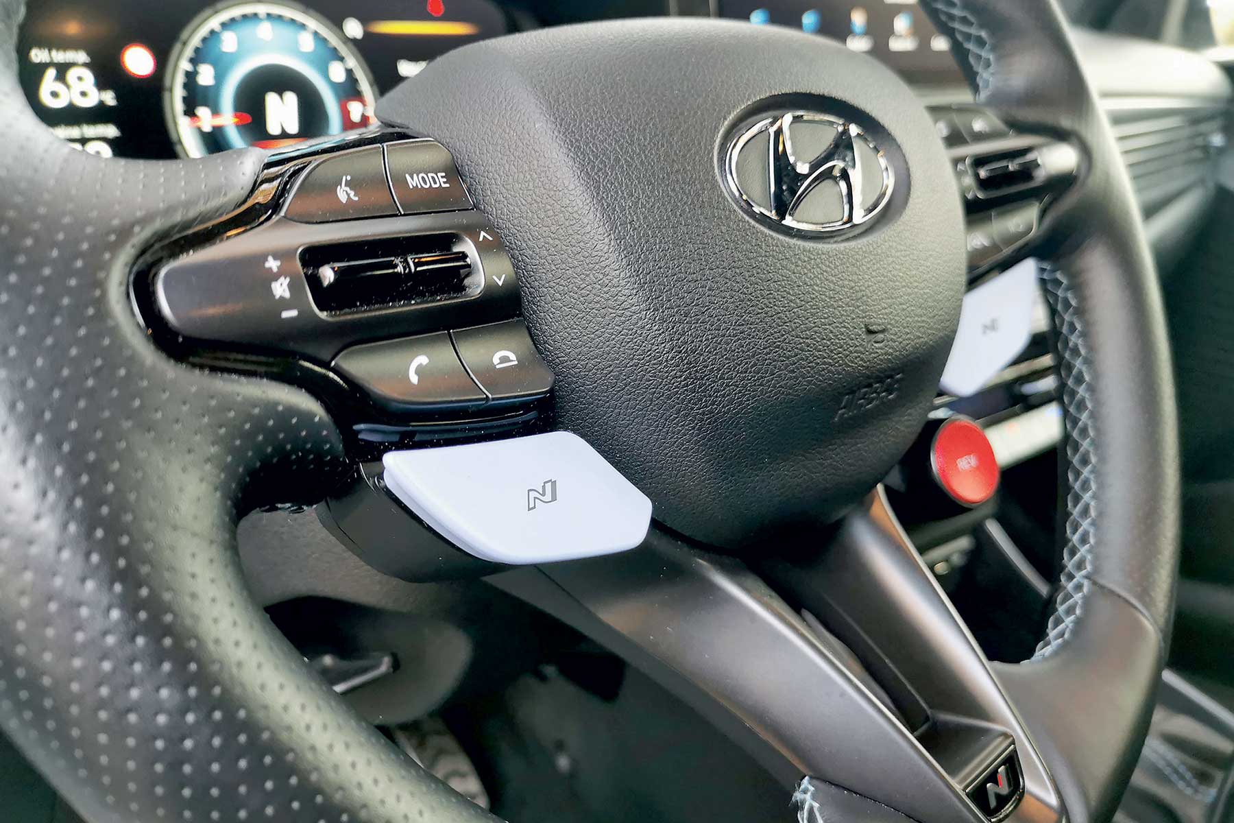 Pored plavih tipki, spomenuli smo u uvodu i crvenu na kojoj piše REV. Njome se uključuje sustav N Rev matching, odnosno sustav koji “usklađuje” okretaje motora i mjenjača kod usporavanja. U praksi, malo podiže okretaje kod promjene u niži stupanj prijenosa. Nije da ne služi ničemu, ali ostali N-gadgeti su nam se učinili puno smislenijim, jer nekad je stvarno teško primijetiti je li ova funkcija uključena ili ne.