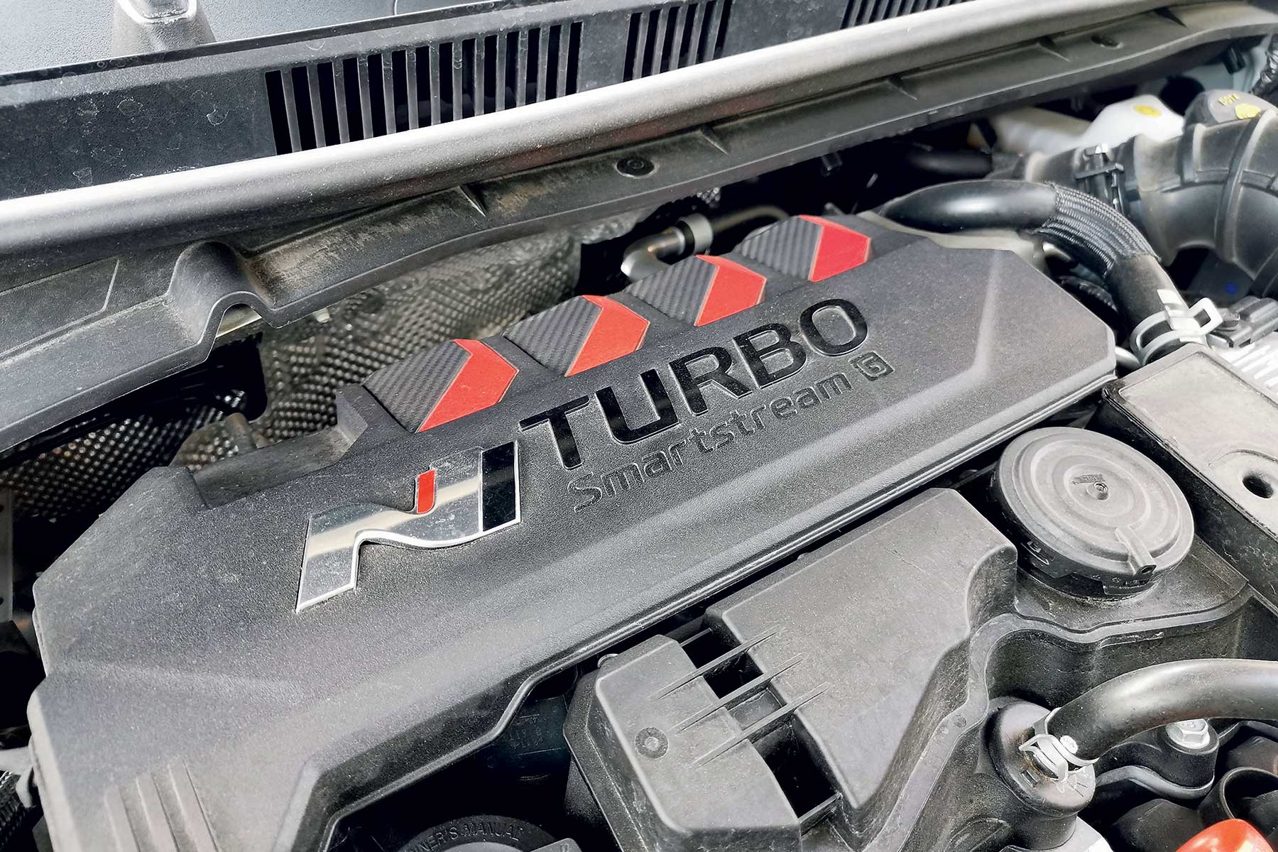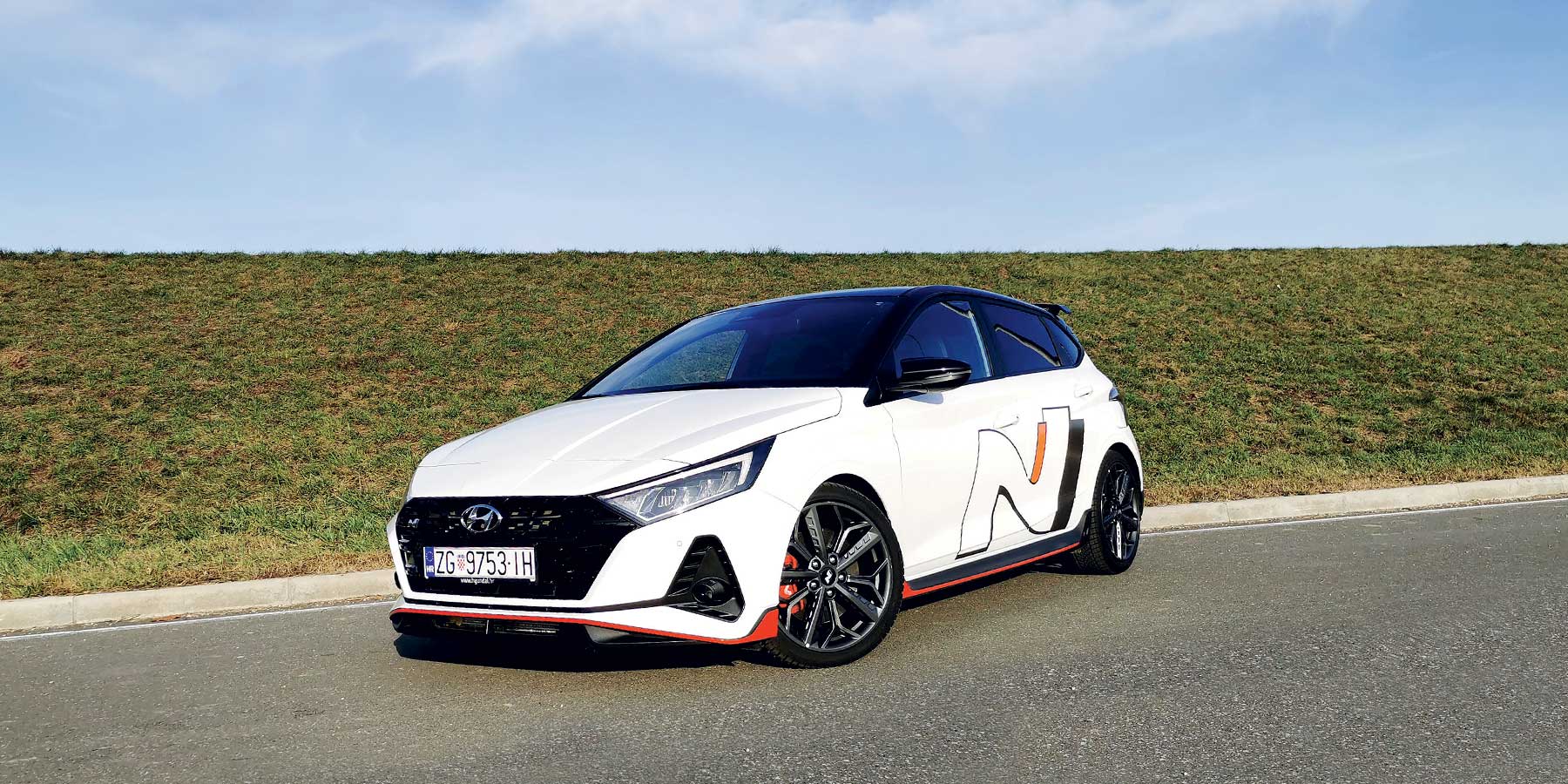 Jednako je i iznutra, sa sportskim sjedalima u kombinaciji kože i tkanine, velikim naslonima za glavu s logotipom N i puno kontrastnih prošava i motiva zastave s kvadratićima. Ono čega nema je plastika meka na dodir. Hyundai je sav novac potrošio na performanse, a to znači da su sve površine od tvrde plastike kako bi vas podsjetile da je ovo ipak još uvijek i20.