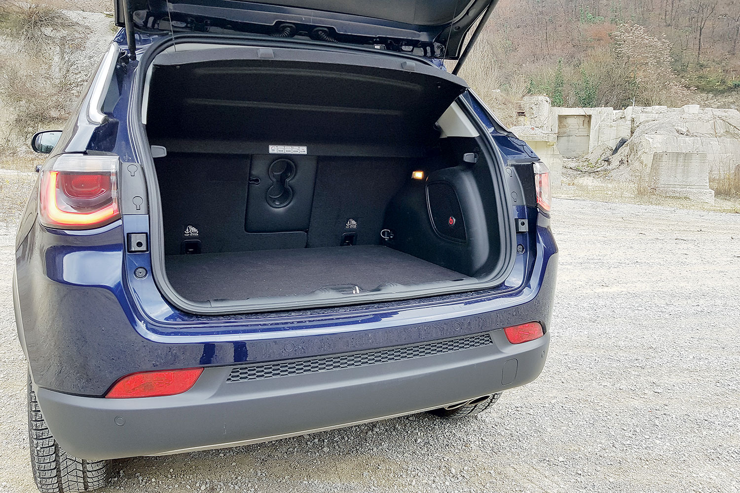 Na autoputu prilikom brzog ulaska u dugi zavoj često se događa da SUV-i krenu “miješati” odnosno da se ljuljaju. Jeep ima upravo pravilno određen stupanj tvrdoće ovjesa. U zavojima djeluje jako sigurno i vrlo malo se naginje s obzirom na dimenzije i konstrukciju. U isto vrijeme na terenu ovjes ima dovoljno hoda da guta velike neravnine i prepreke. S novim Compassom Jeep je konačno dobro odradio posao. Uspjeli su dobiti udobnost i luksuz Cherokeea te ga približili kompaktnoj klasi SUV-a.