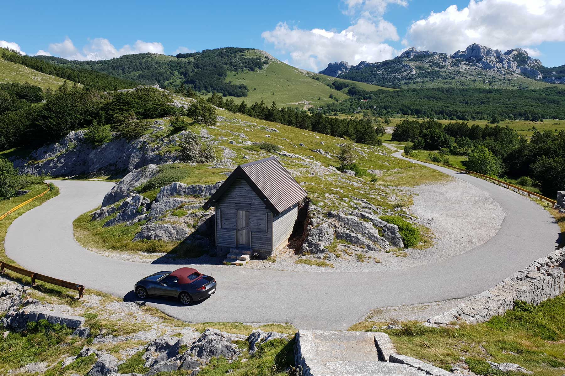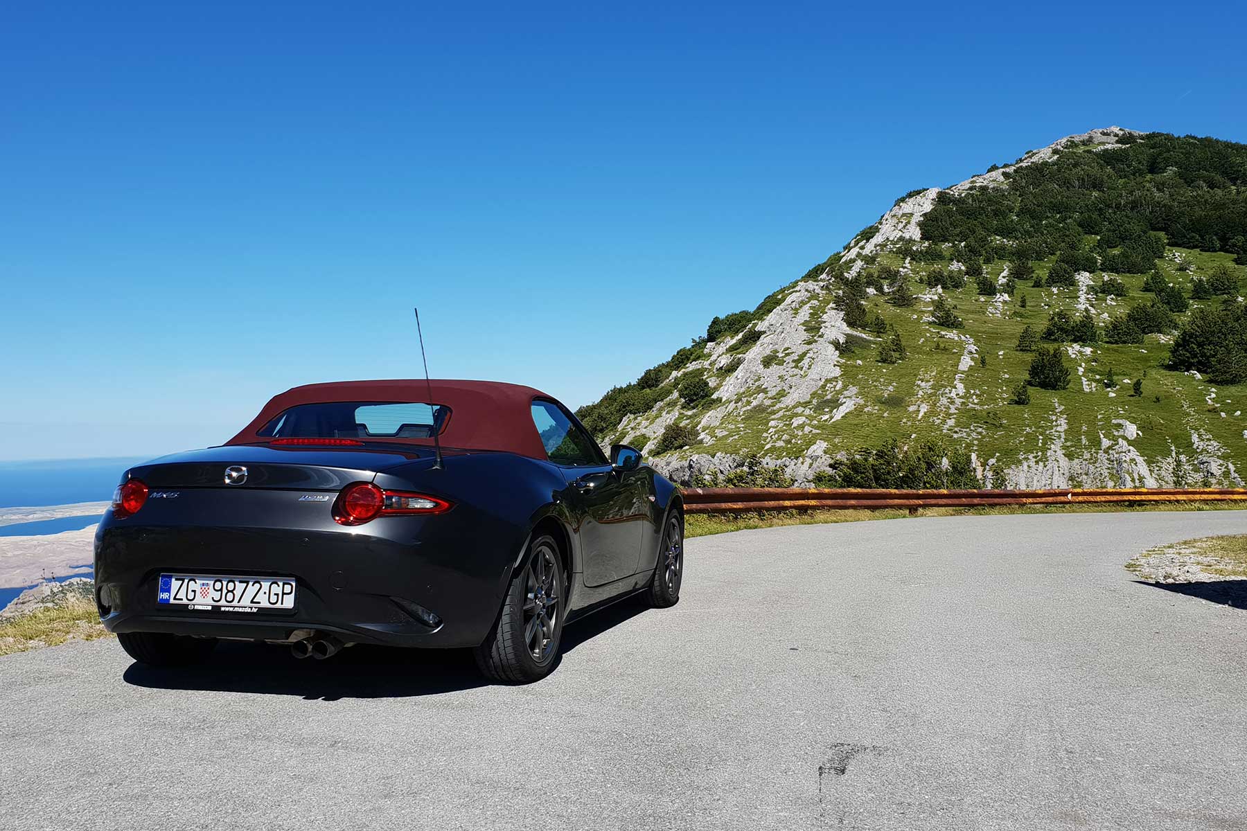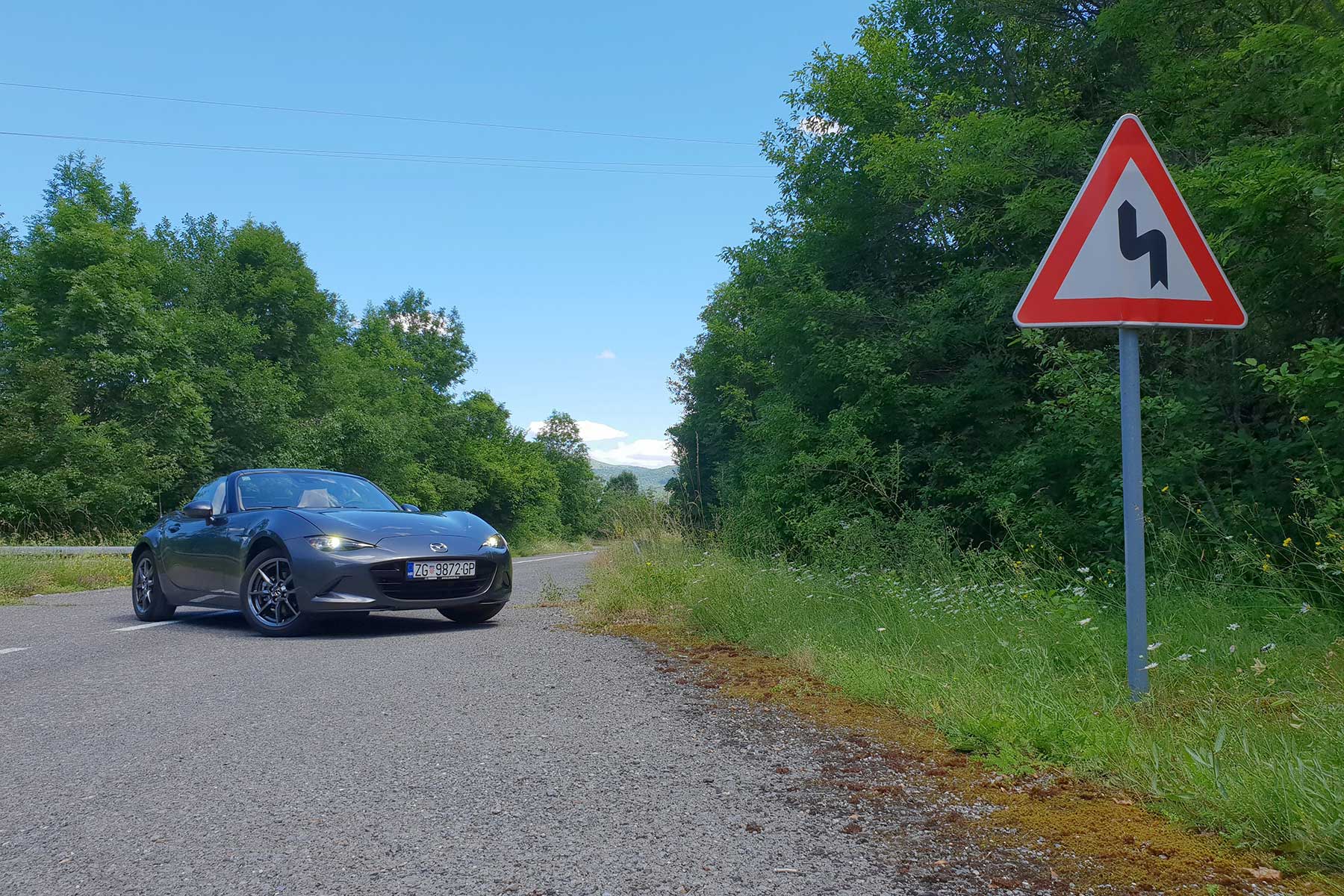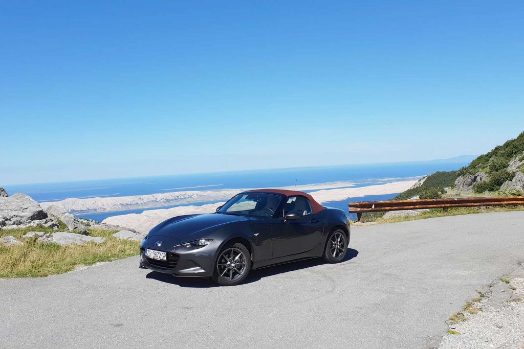 Ovdje ima svega. Od fluidnih komada gdje nema puštanja gasa do dugih, preglednih ukosnica na uvalama gdje imate dojam kao da se sunovratite u Karusell Nordschleifea. Koliko god kasno kočili uvijek imam dojam da “može još”. Isti osjećaj imao sam s NB na ovoj ruti. Gas pritišćem s petom u zraku, u glavi tik pred zavoj zvoni “pretjerao si”, okrenem volan 20 stupnjeva, nos zagrize, karoserija se nagne, čučne na stražnji vanjski kotač i ako nisam pustio gas, uz blago klizanje nosa, sasvim sigurna, Miata zagrli brdo i ostane u svojoj prometnoj traci.
