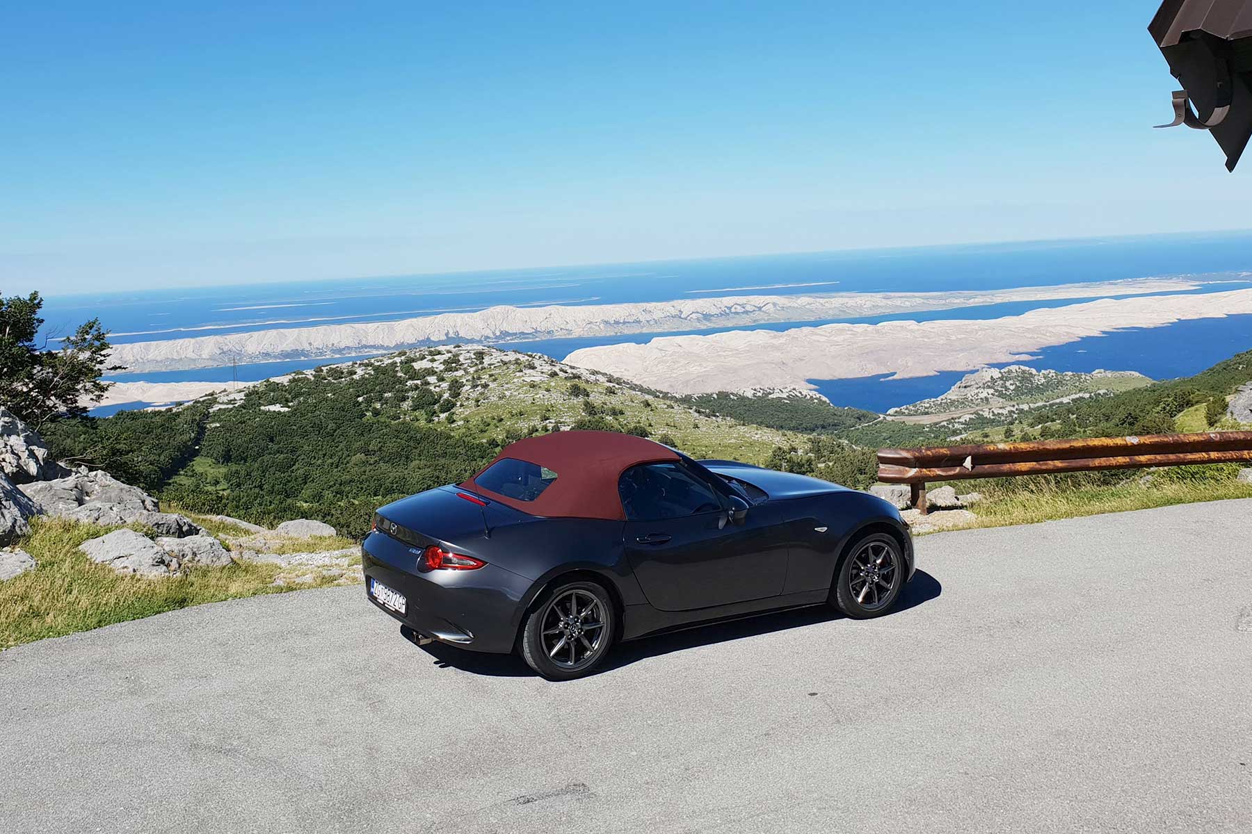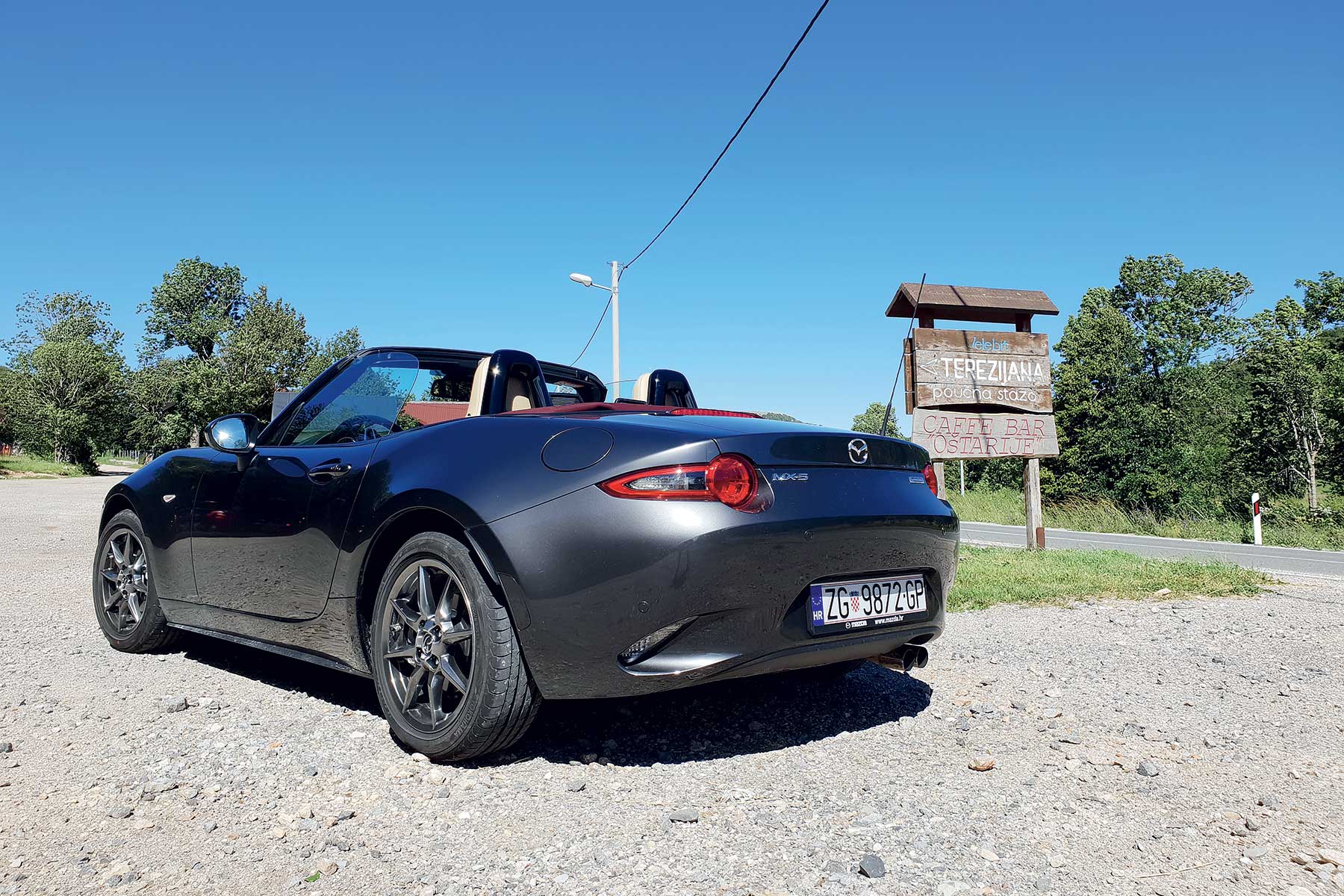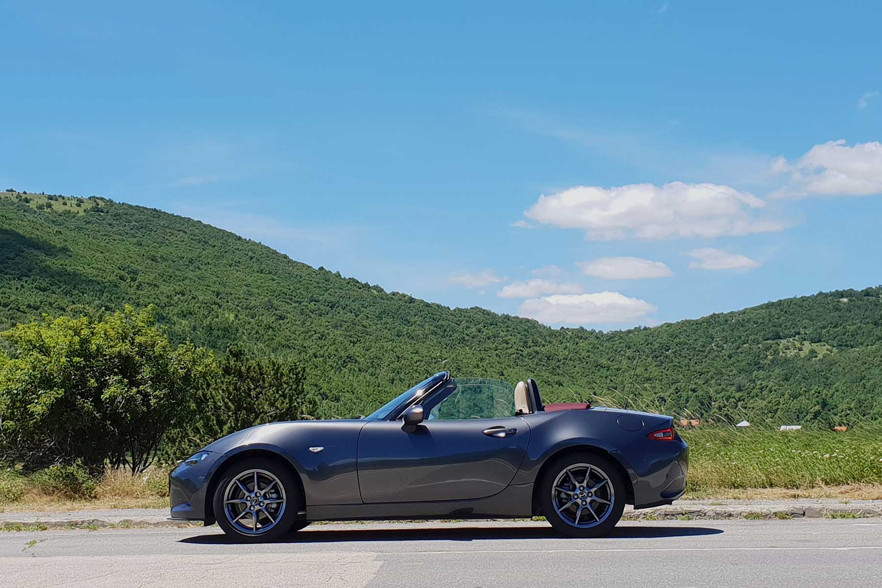 Ovdje ima svega. Od fluidnih komada gdje nema puštanja gasa do dugih, preglednih ukosnica na uvalama gdje imate dojam kao da se sunovratite u Karusell Nordschleifea. Koliko god kasno kočili uvijek imam dojam da “može još”. Isti osjećaj imao sam s NB na ovoj ruti. Gas pritišćem s petom u zraku, u glavi tik pred zavoj zvoni “pretjerao si”, okrenem volan 20 stupnjeva, nos zagrize, karoserija se nagne, čučne na stražnji vanjski kotač i ako nisam pustio gas, uz blago klizanje nosa, sasvim sigurna, Miata zagrli brdo i ostane u svojoj prometnoj traci.