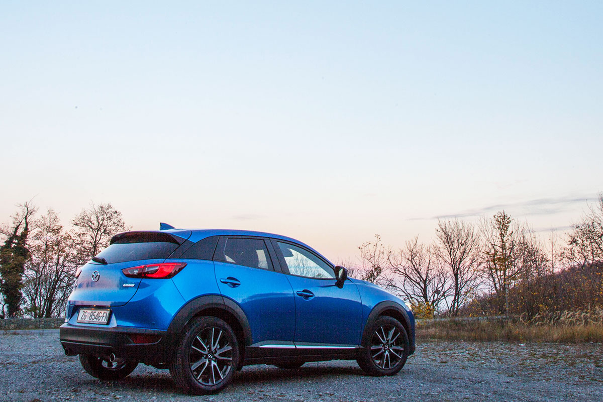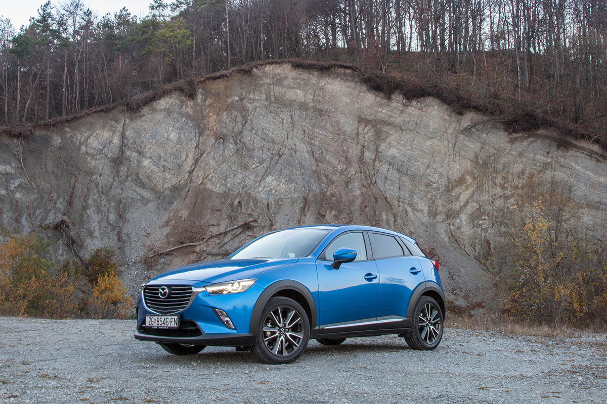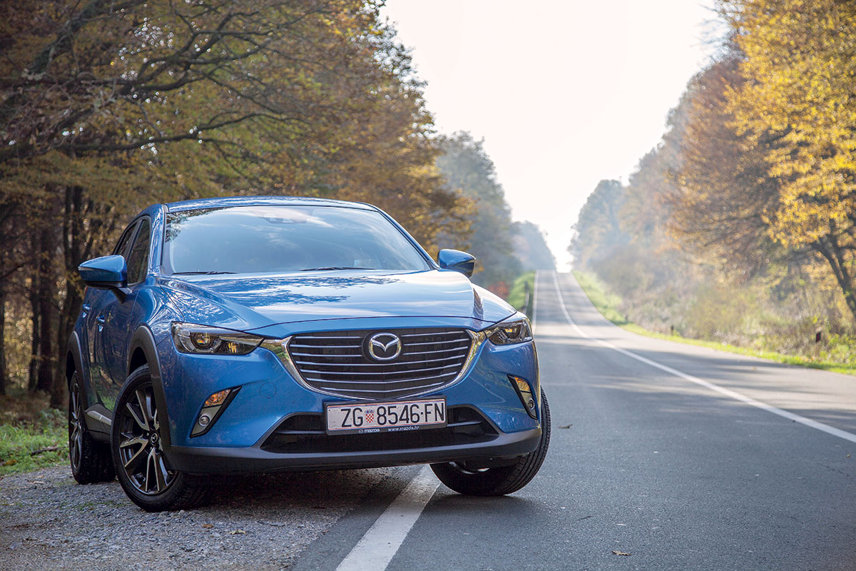 Pod poklopcem se krije svega 120 KS iz 2,0 motora, što kad ju pogledate izvana djeluje anemično za toliki automobil. Ipak CX-3 dizajnom skriva svoju laku gradnju. Izgleda teža i veća nego zapravo jest. U ovoj izvedbi ima svega 1230 kilograma. Lagana je i to se prilično osjeti na promjeni smjera, ali i na udarnim rupama.