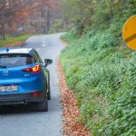 CX-3 pokazuje natruhu klizanja nosom, na samoj granici gdje bi se oslobodila u bočno klizanje. Postavljena je jako sigurno i ulijeva pouzdanje. Mogu se osloniti na kočnice i volan, usmjeriti ju gdje hoću, ali mi prilično jasno daje do znanja gdje je granica. Ono što mi se ne uklapa u cijelu priču je razina prijanjanja. Znam kakva je cesta, vidim kakvi su uvjeti, trebao bih već odavno kočiti i smanjiti tempo, no grip je postojan.